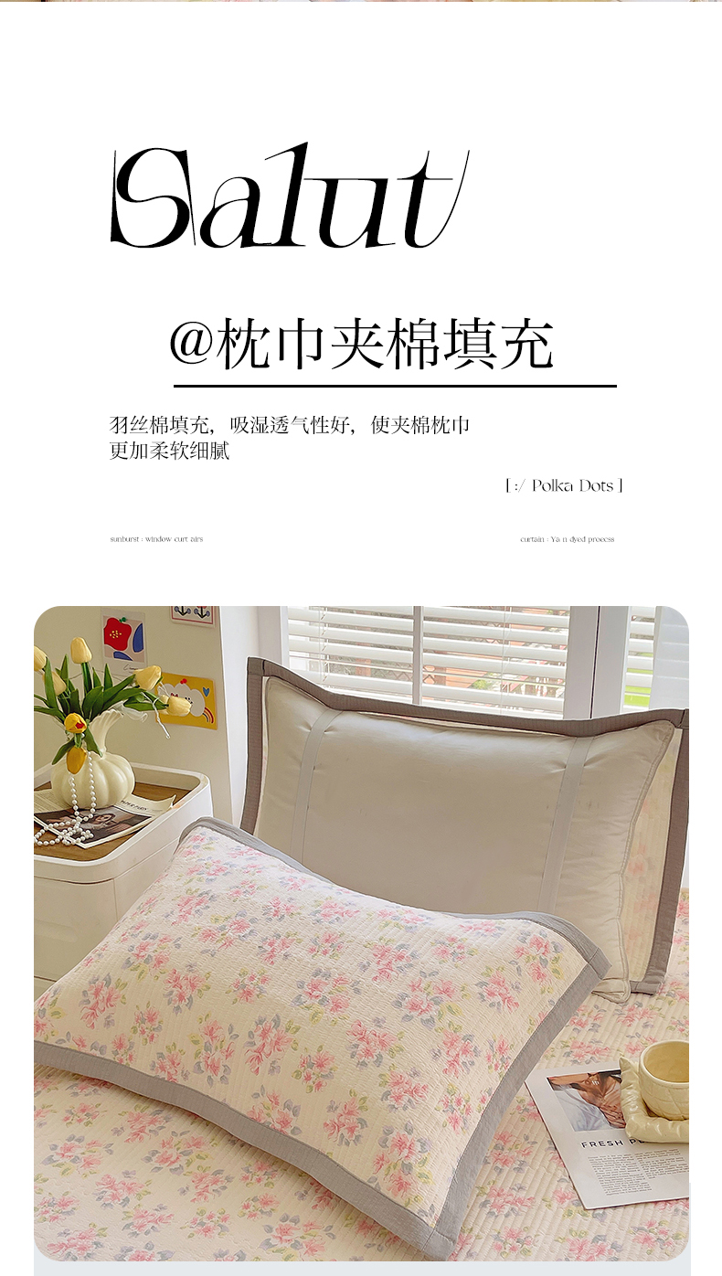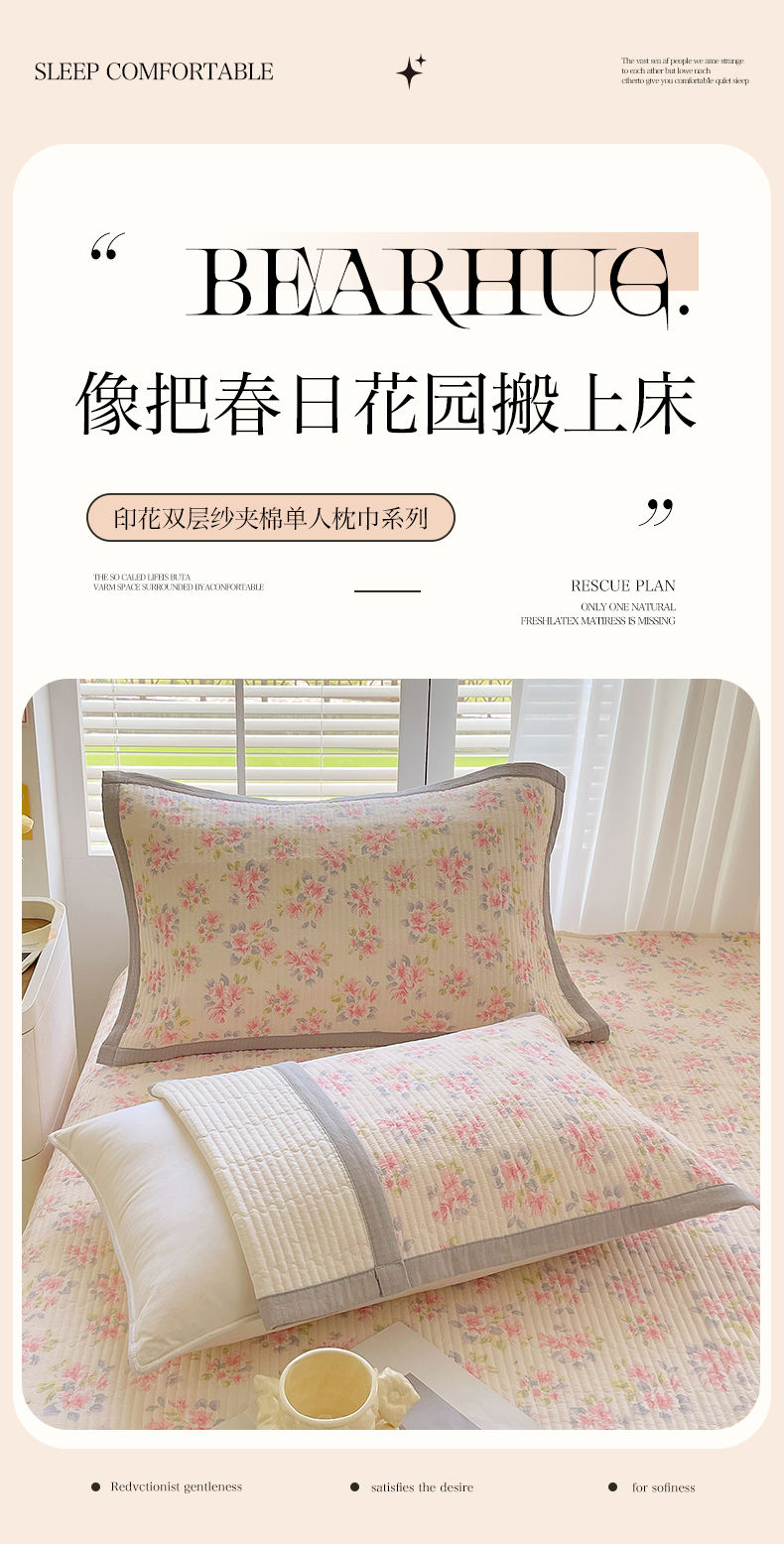 商品名称:雨彤家纺 2025新款A类双层纱夹棉单人枕巾 槐夏风清