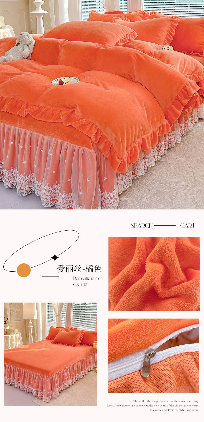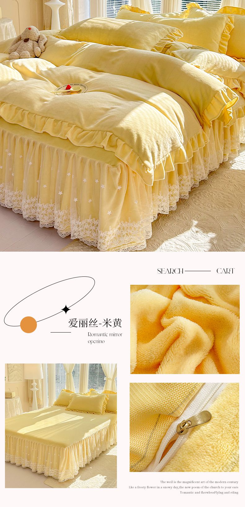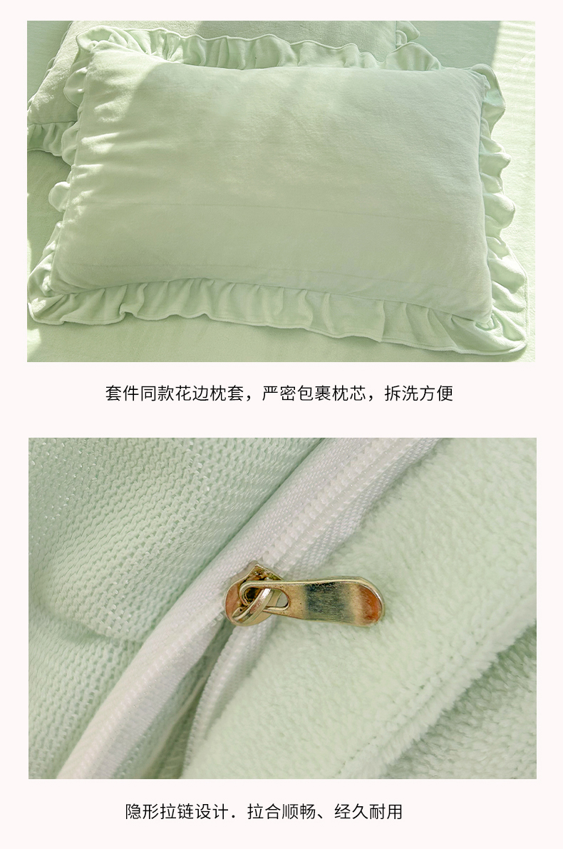 商品名称:唐人居 2025新款加厚牛奶绒蕾丝花边床裙款四件套--爱丽丝系列 爱丽丝-豆绿