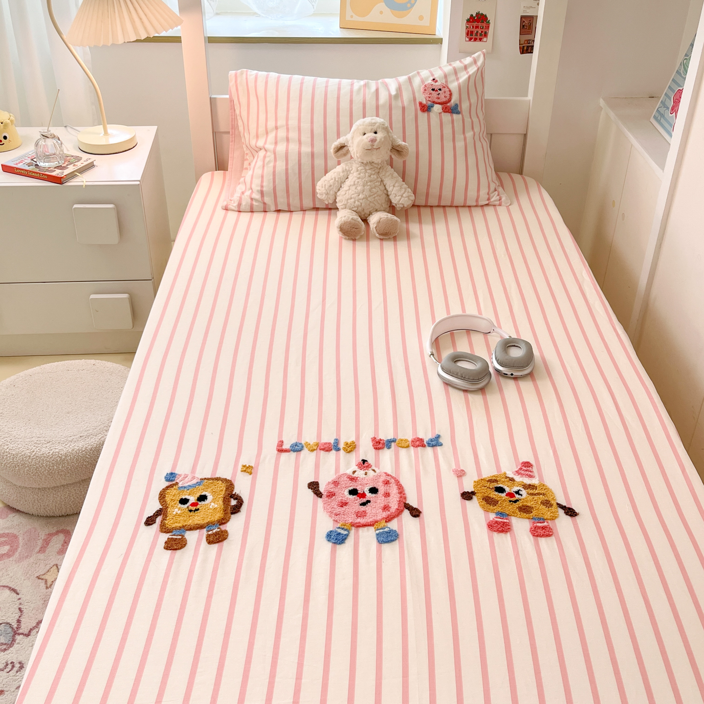 慕尚家纺 2025新款全棉纯棉毛巾绣单床笠 趣味饼干