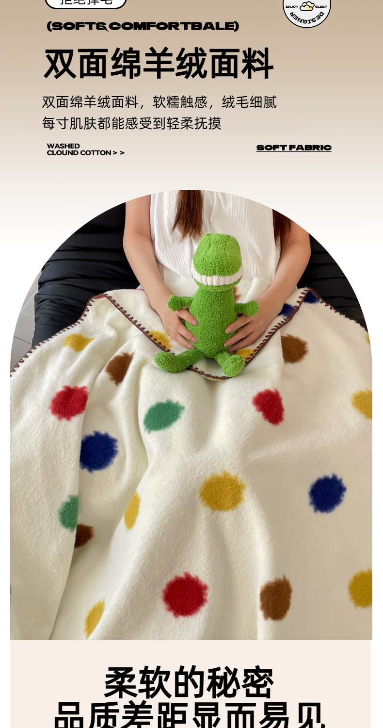 (总)晚爱家纺(原晚安家居) 2025新款跨境暖羊绒双面绵羊绒沙发毯多功能盖毯,彩波点,糖块,节日派对,咖波点,蓝郁,梦幻花园,南山蓝,七彩条,虚幻灰,虚幻米,组合图仅供展示不可下单