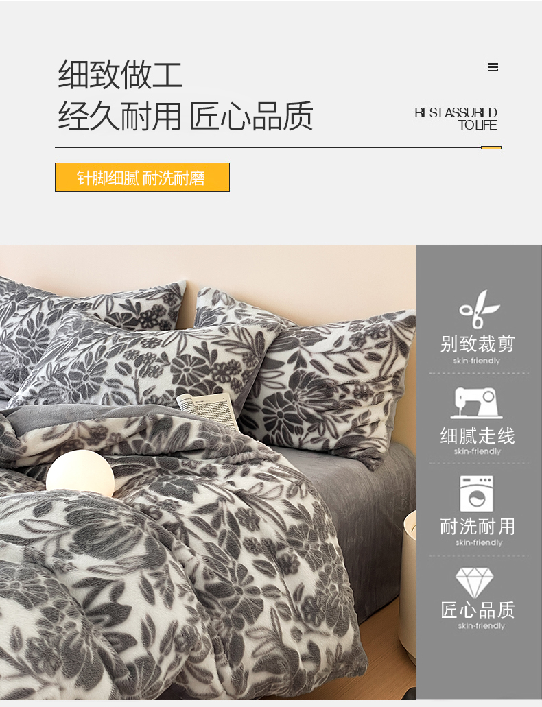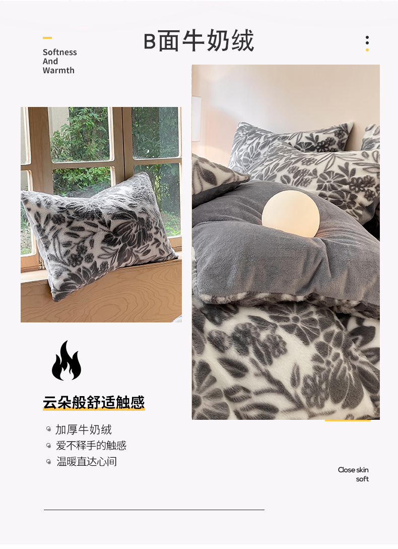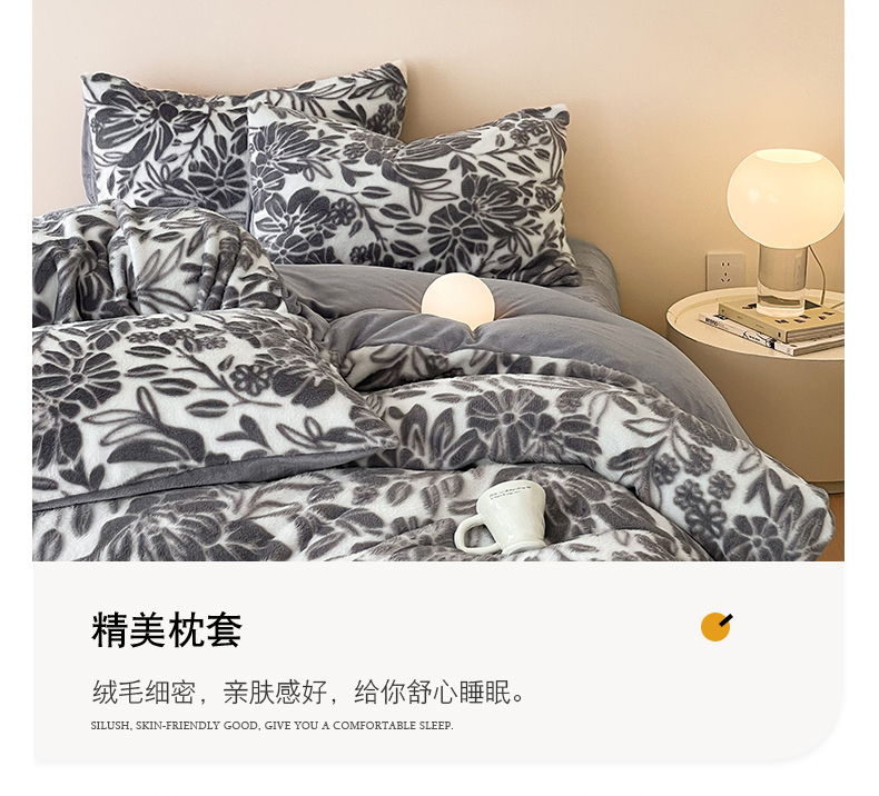 当前位置: 91家纺网 > 商品网购 > 床品套件 > 四件套 > 牛奶绒四件套 > 金爱家 2025新款全消光牛奶绒A类纯色獭兔毛绒立体牛奶绒四件套 兔毛繁花灰色