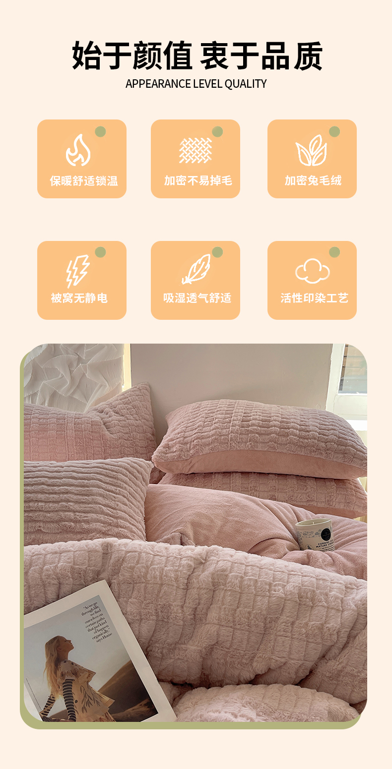 当前位置: 91家纺网 > 商品网购 > 床品套件 > 四件套 > 牛奶绒四件套 > 金爱家 2025新款全消光牛奶绒A类纯色獭兔毛绒立体牛奶绒四件套 兔毛印花-水光蓝