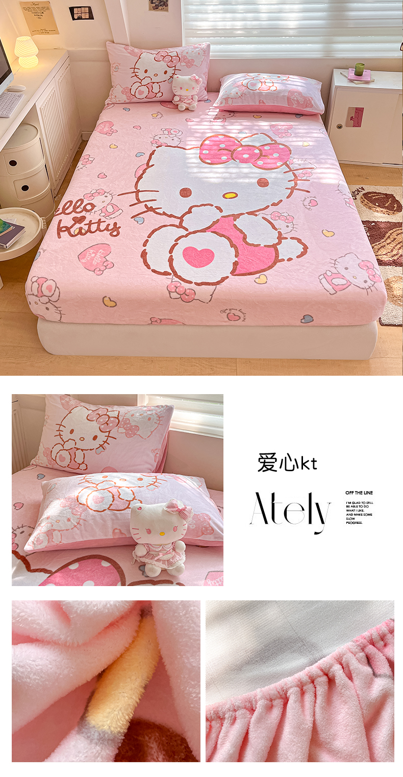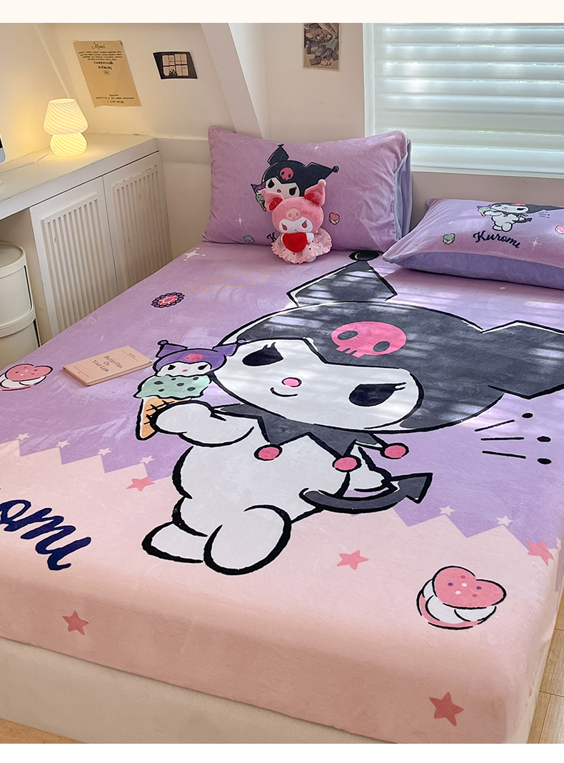 金爱家 2025新款高克重牛奶绒单品系列保暖床单床笠单件 绒-D冰淇淋甜心库洛米
