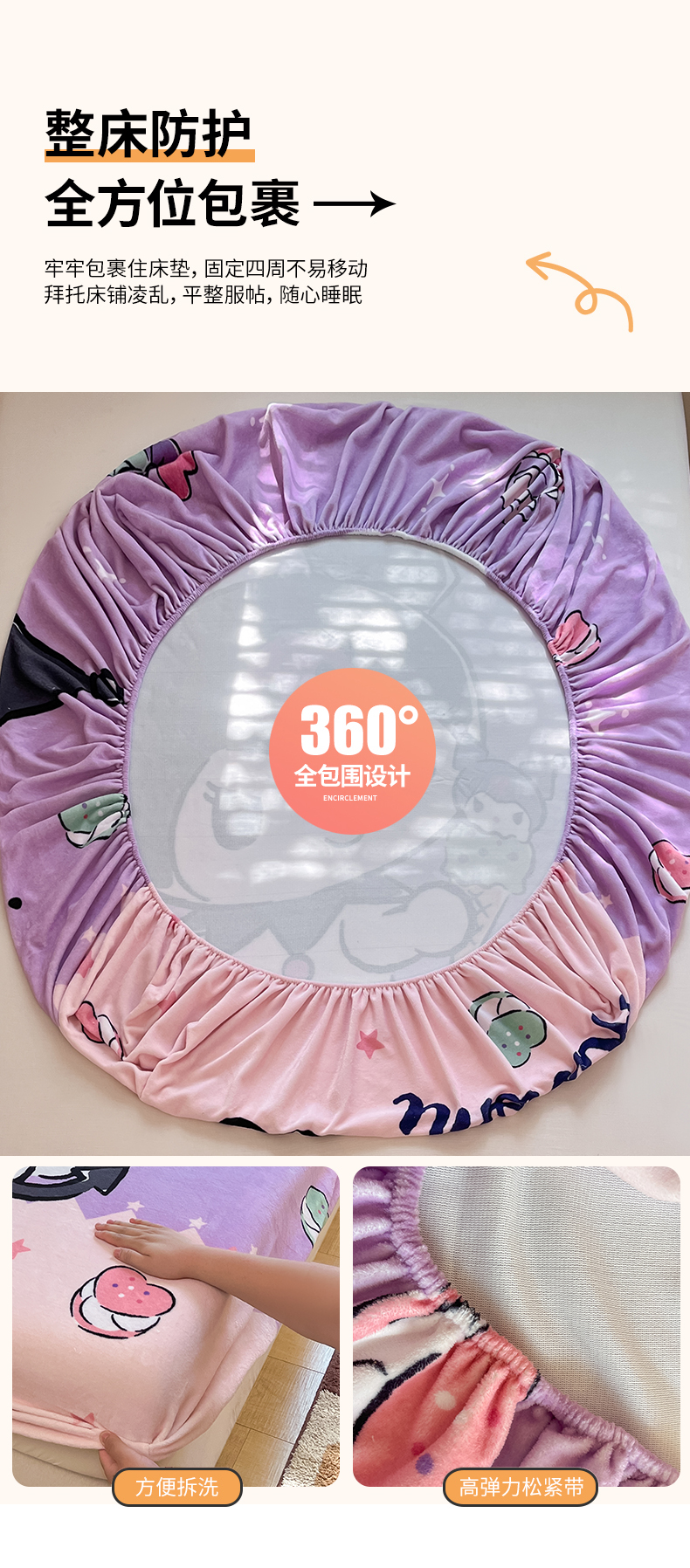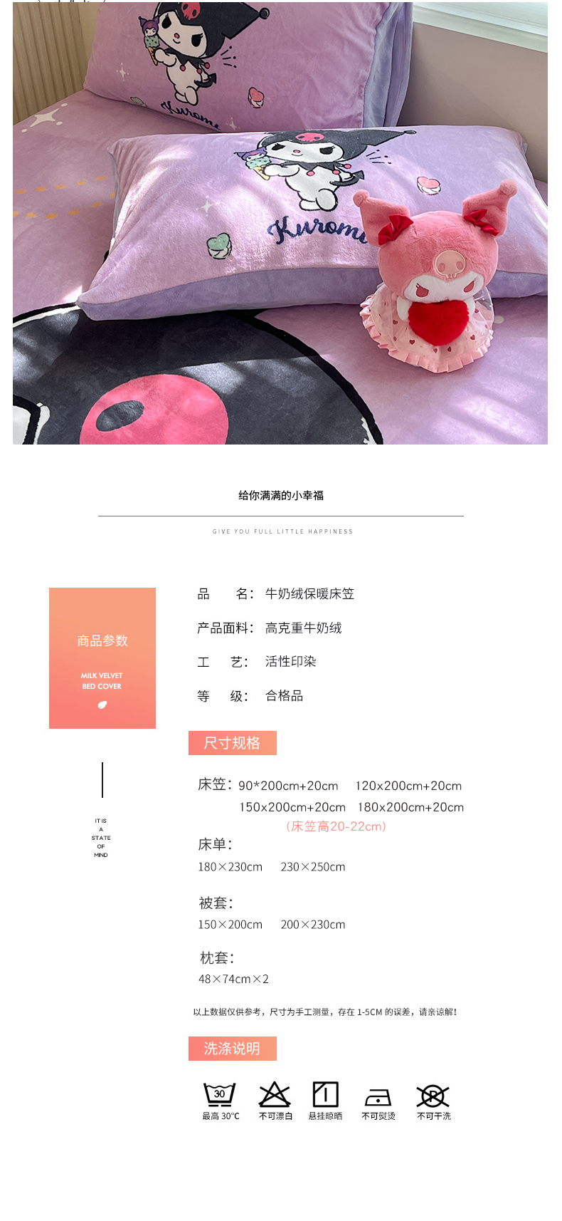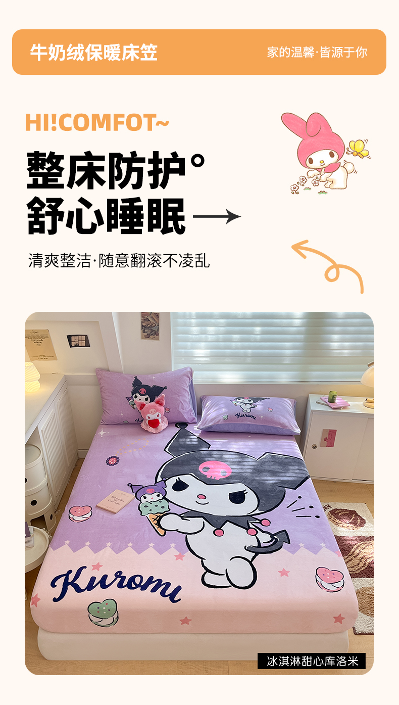 当前位置: 91家纺网 > 商品网购 > 床上用品 > 床笠 > 金爱家 2025新款高克重牛奶绒单品系列保暖床单床笠单件 绒-D冰淇淋甜心库洛米