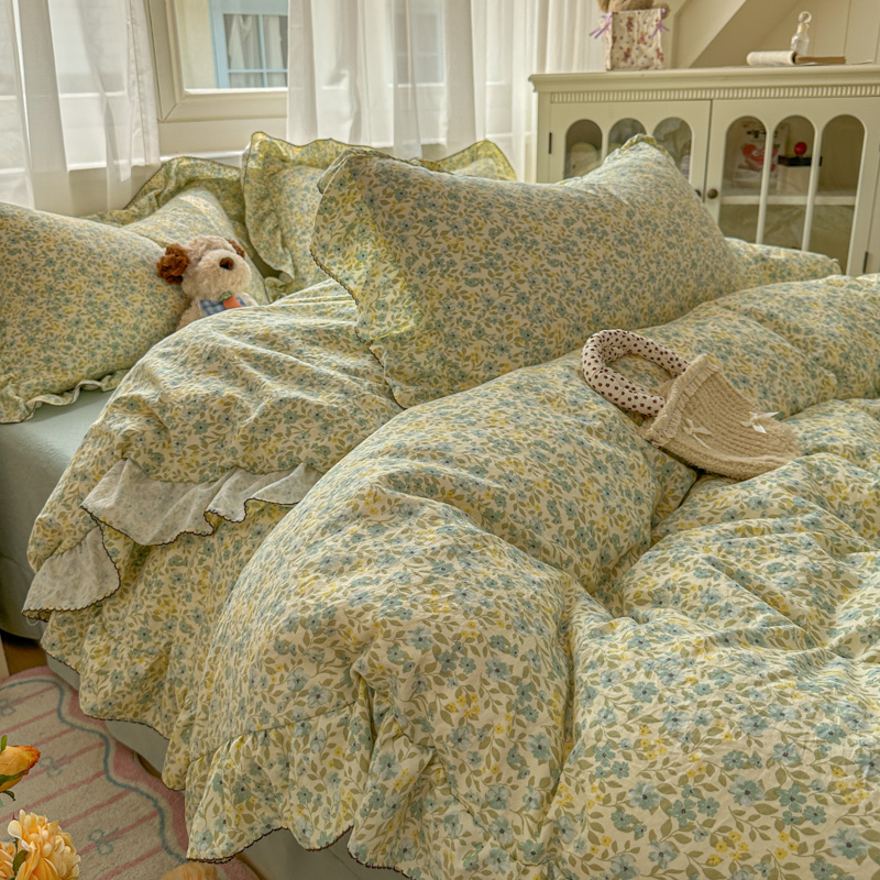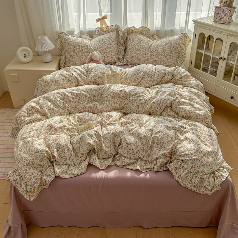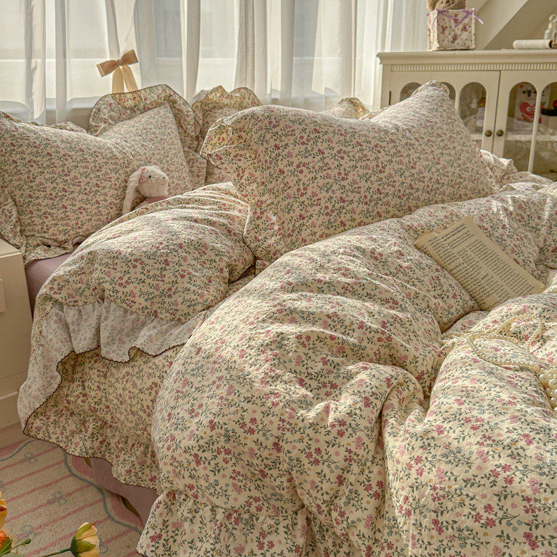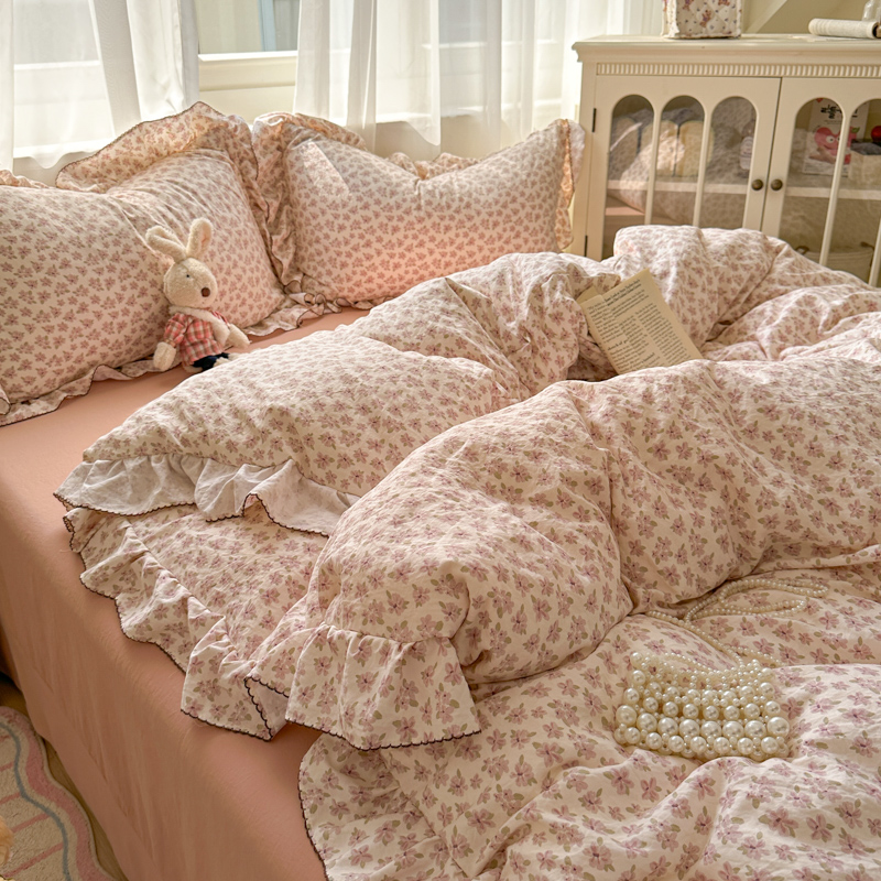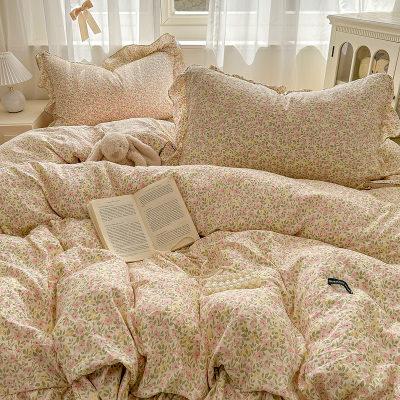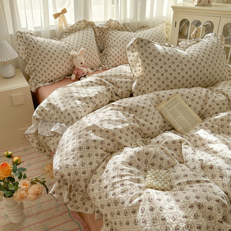 (总)欧尚 2026新款花边床盖四件套,春和,花束,花野,灰樱桃,咖爱心,咖豹纹,咖啡小猫,梨花落,绿爱心,梦境,木马,奶油波点,暖橘枝,暖心,人间草木,田园兔,小女孩,星愿,摇摇马,紫爱心,紫豹纹,紫苏