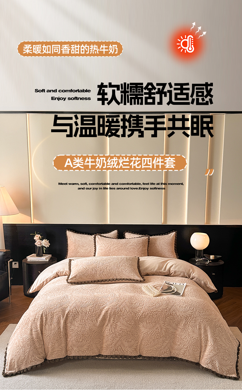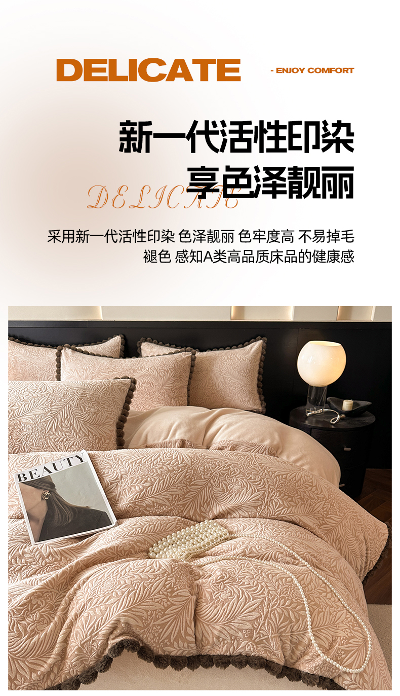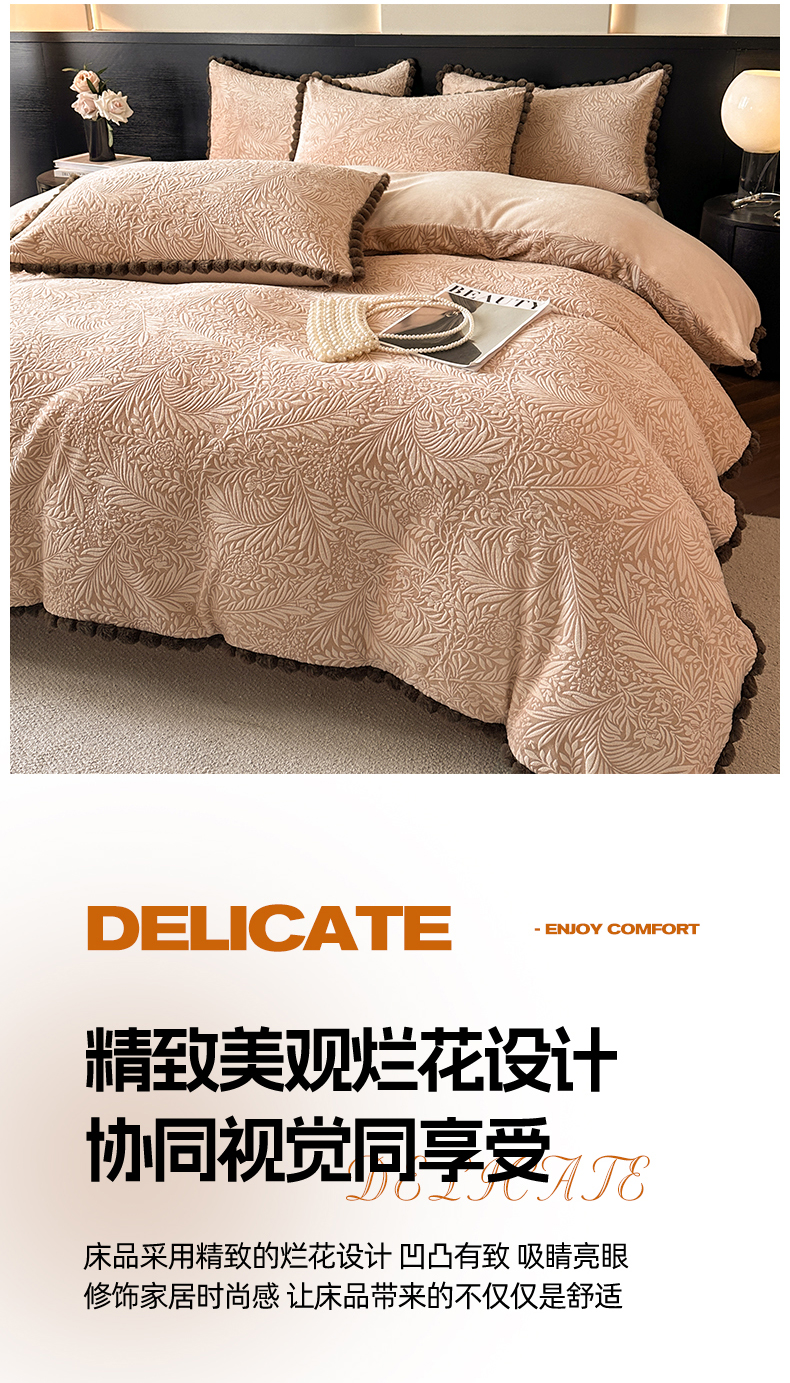 当前位置: 91家纺网 > 商品网购 > 床品套件 > 四件套 > 牛奶绒四件套 > 羚羊语家纺 2025新款雕花绒牛奶绒兔毛球四件套轻奢风立体着色烂花牛奶绒提花加厚保暖床单 蜜绒绒-莫松染