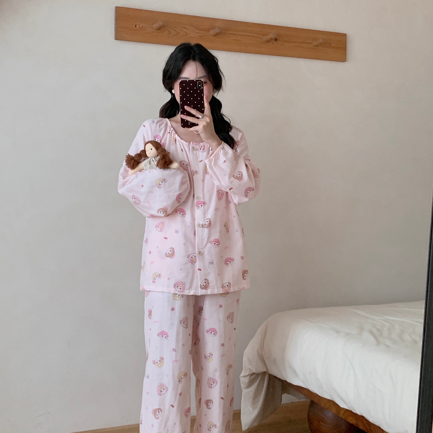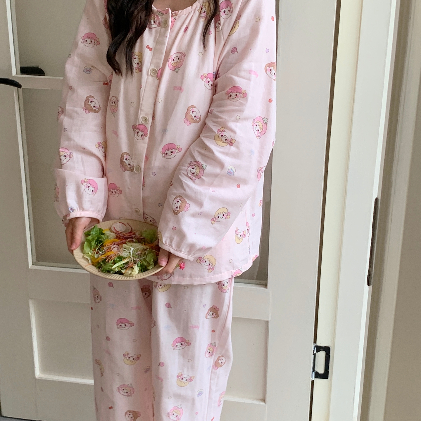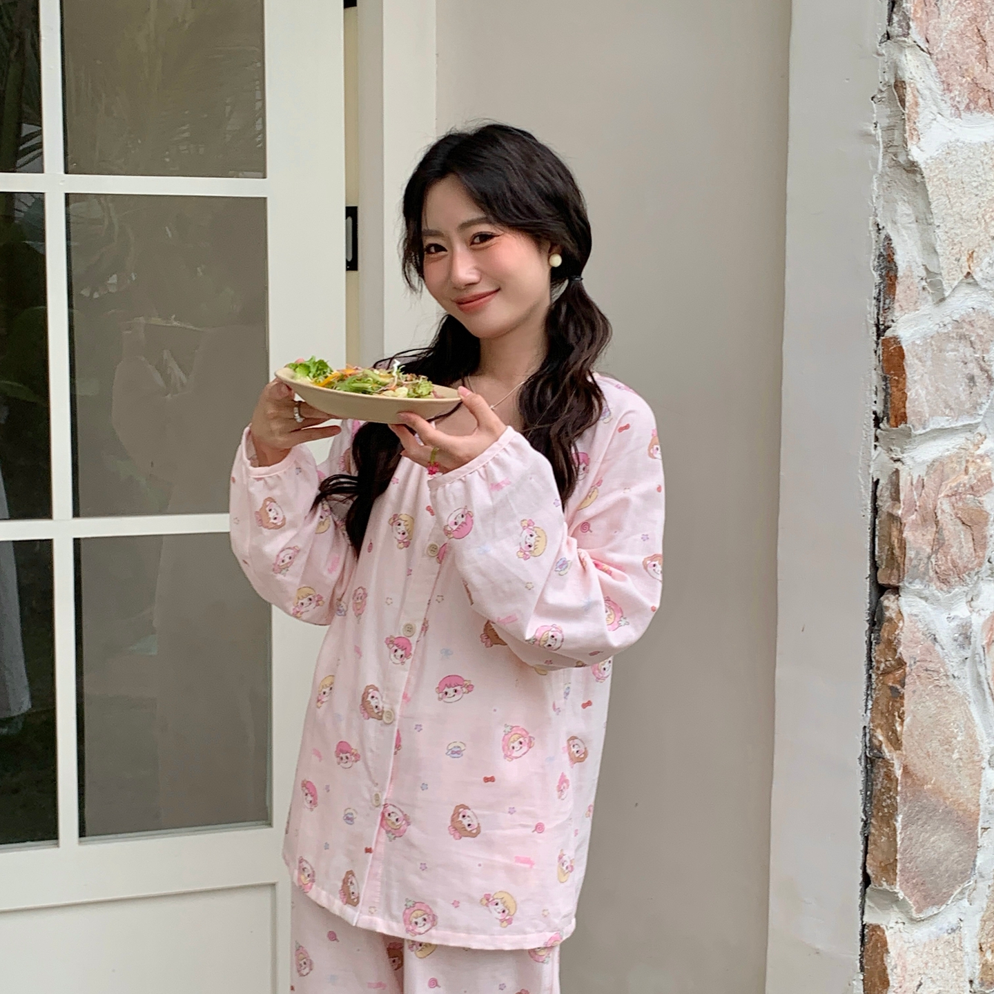 (总)纽约生活 2025新款绉布圆领开扣长袖长裤(会员-5),波比熊,黑碎花猫咪,蝴蝶结粉熊,花花狗,蓝碎花,塞纳花房