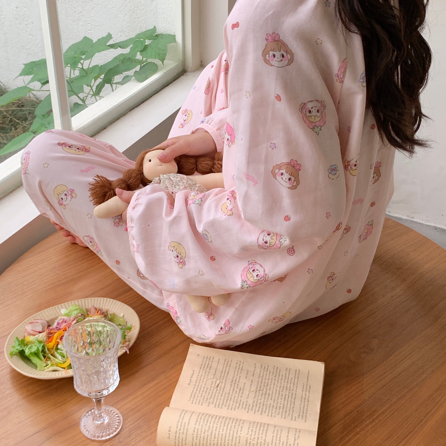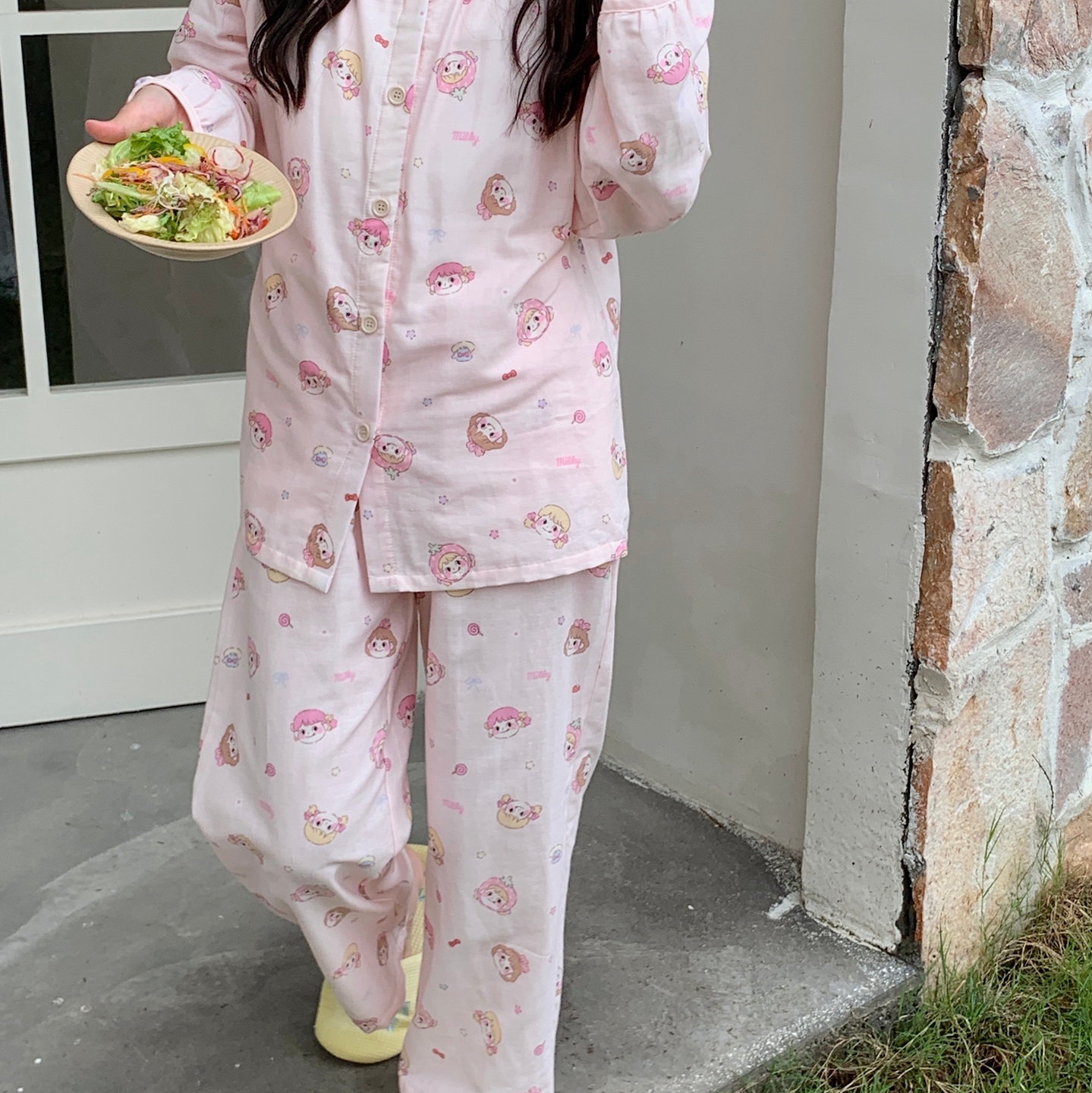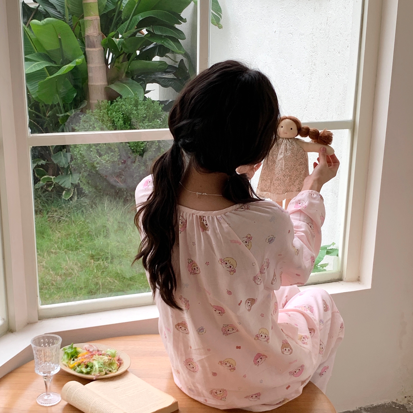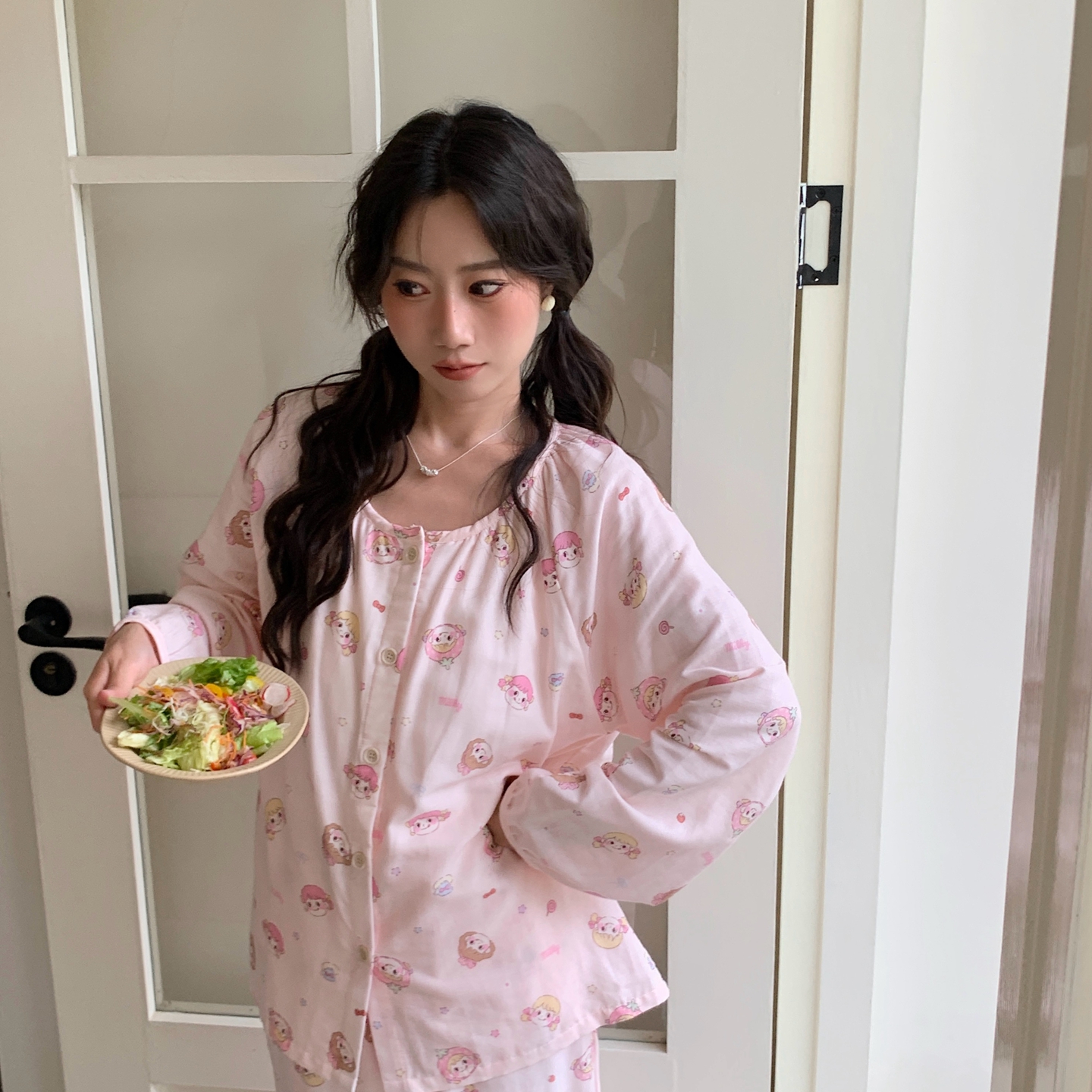 (总)纽约生活 2025新款绉布圆领开扣长袖长裤(会员-5),波比熊,黑碎花猫咪,蝴蝶结粉熊,花花狗,蓝碎花,塞纳花房