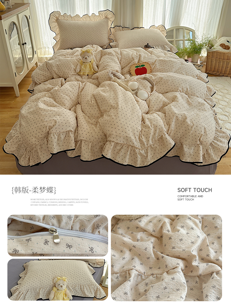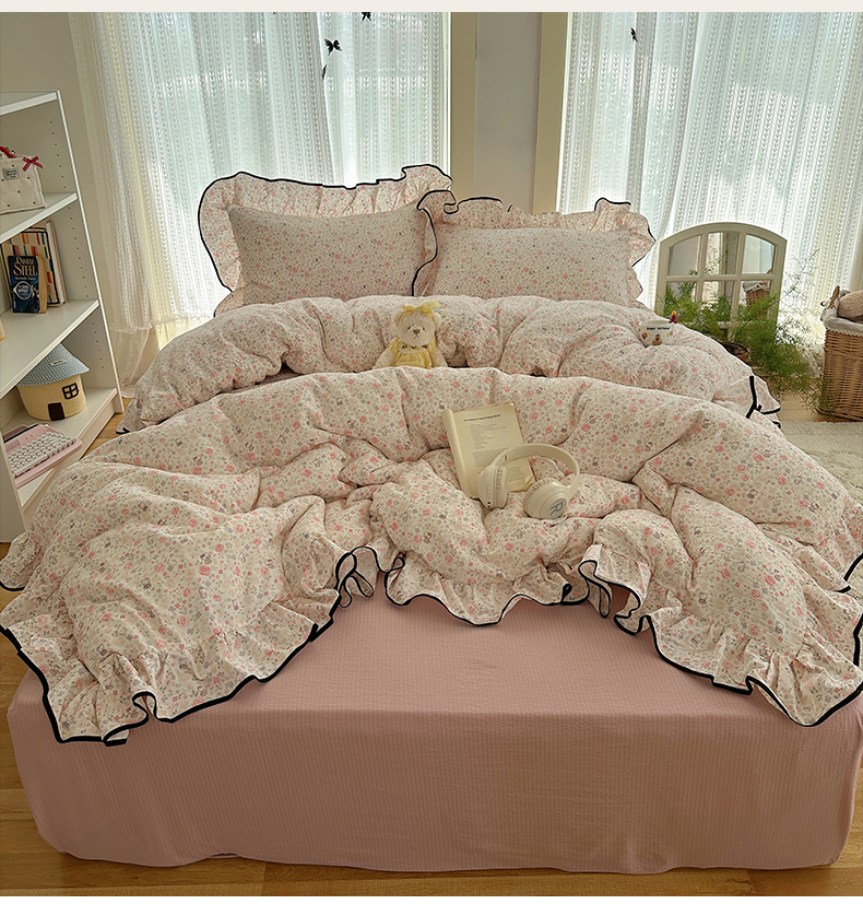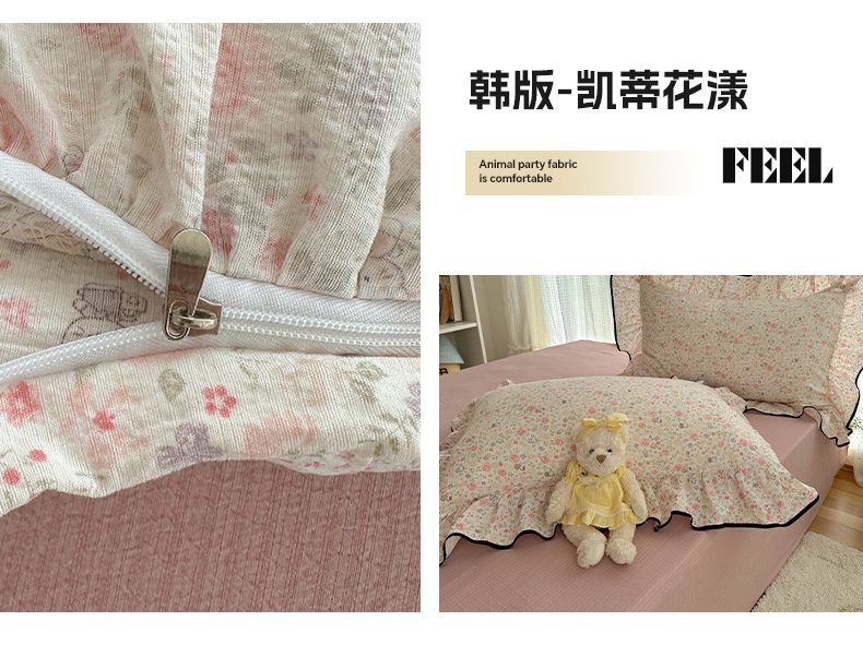 (总)红嘴企鹅 2025新款韩版双拼花边四件套