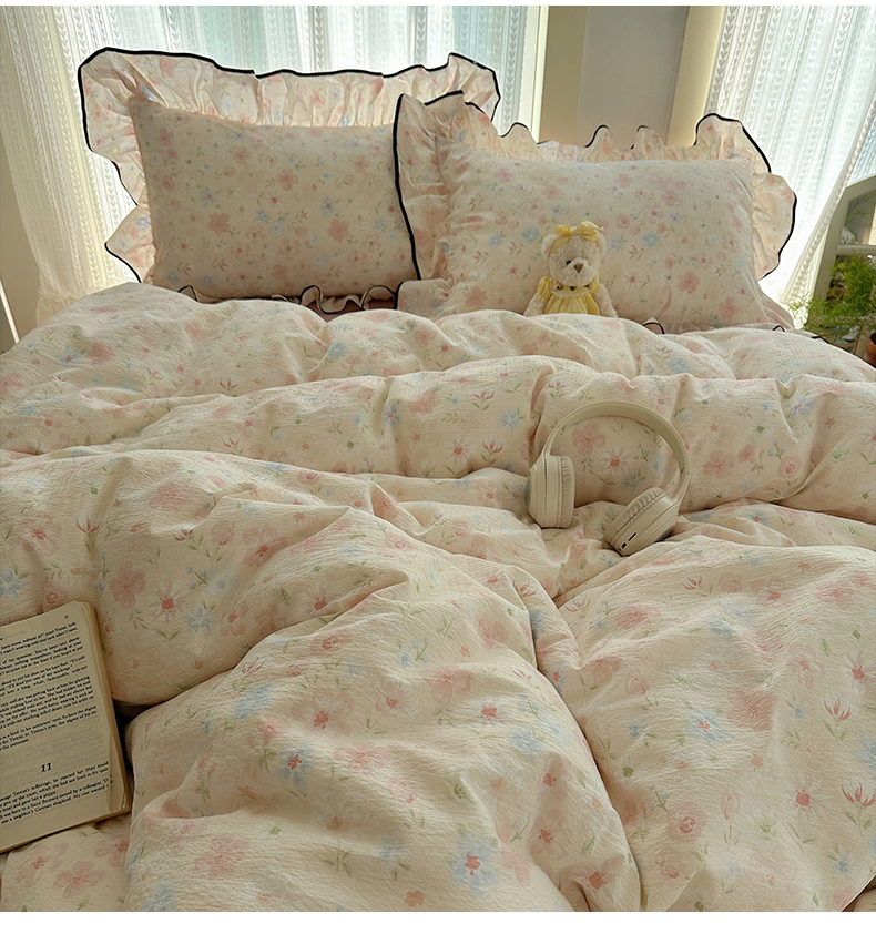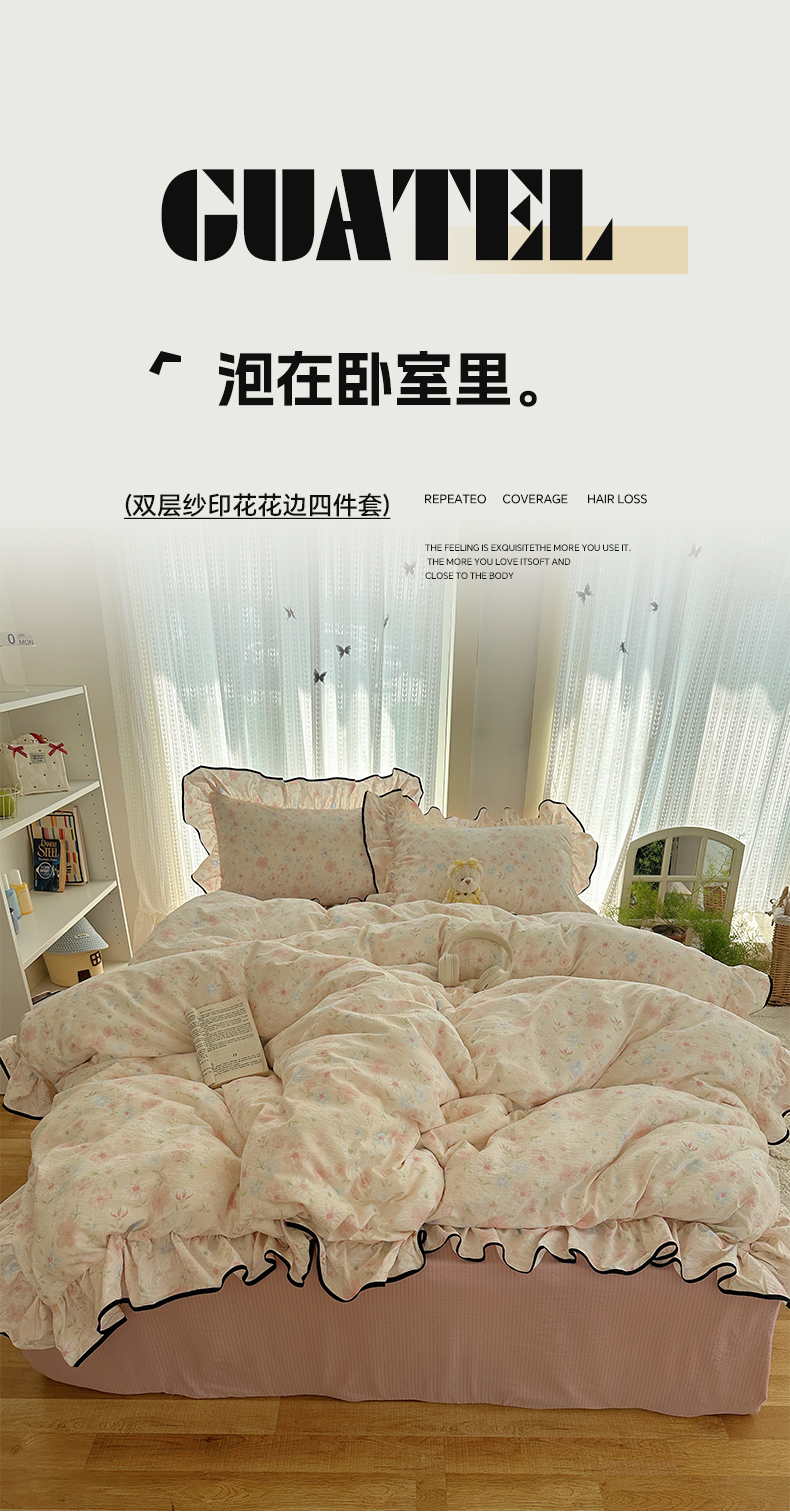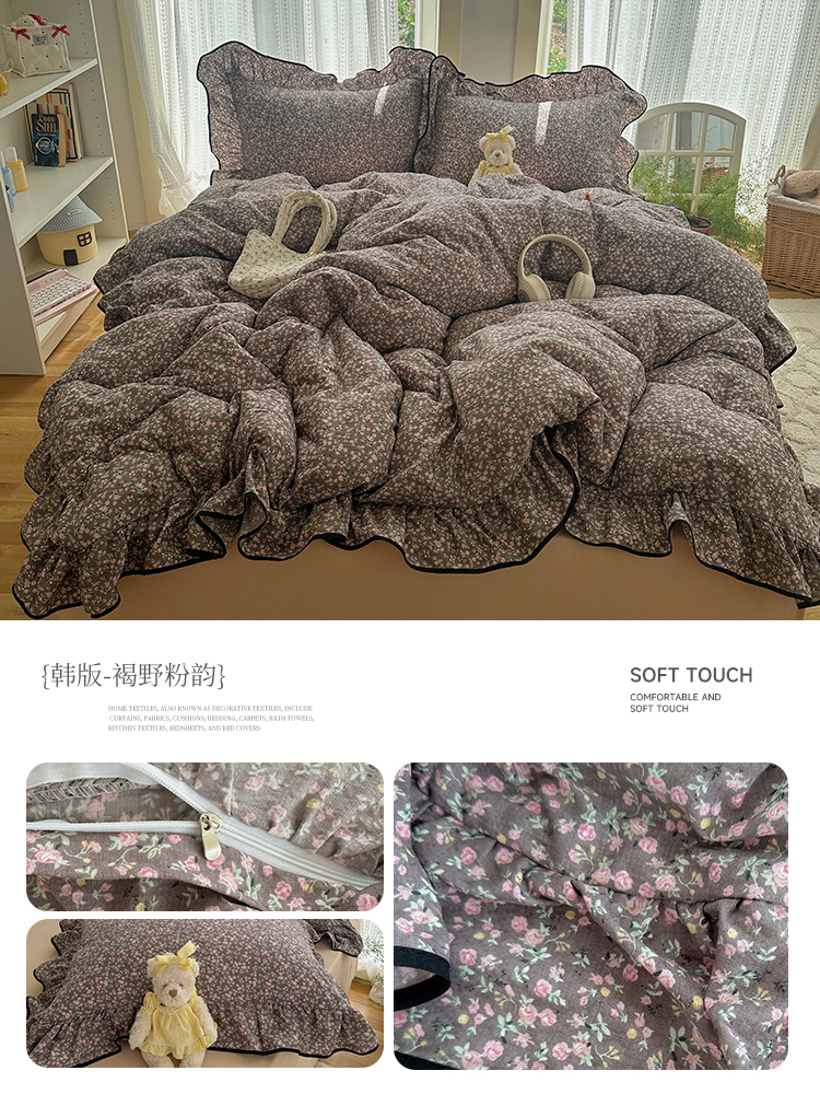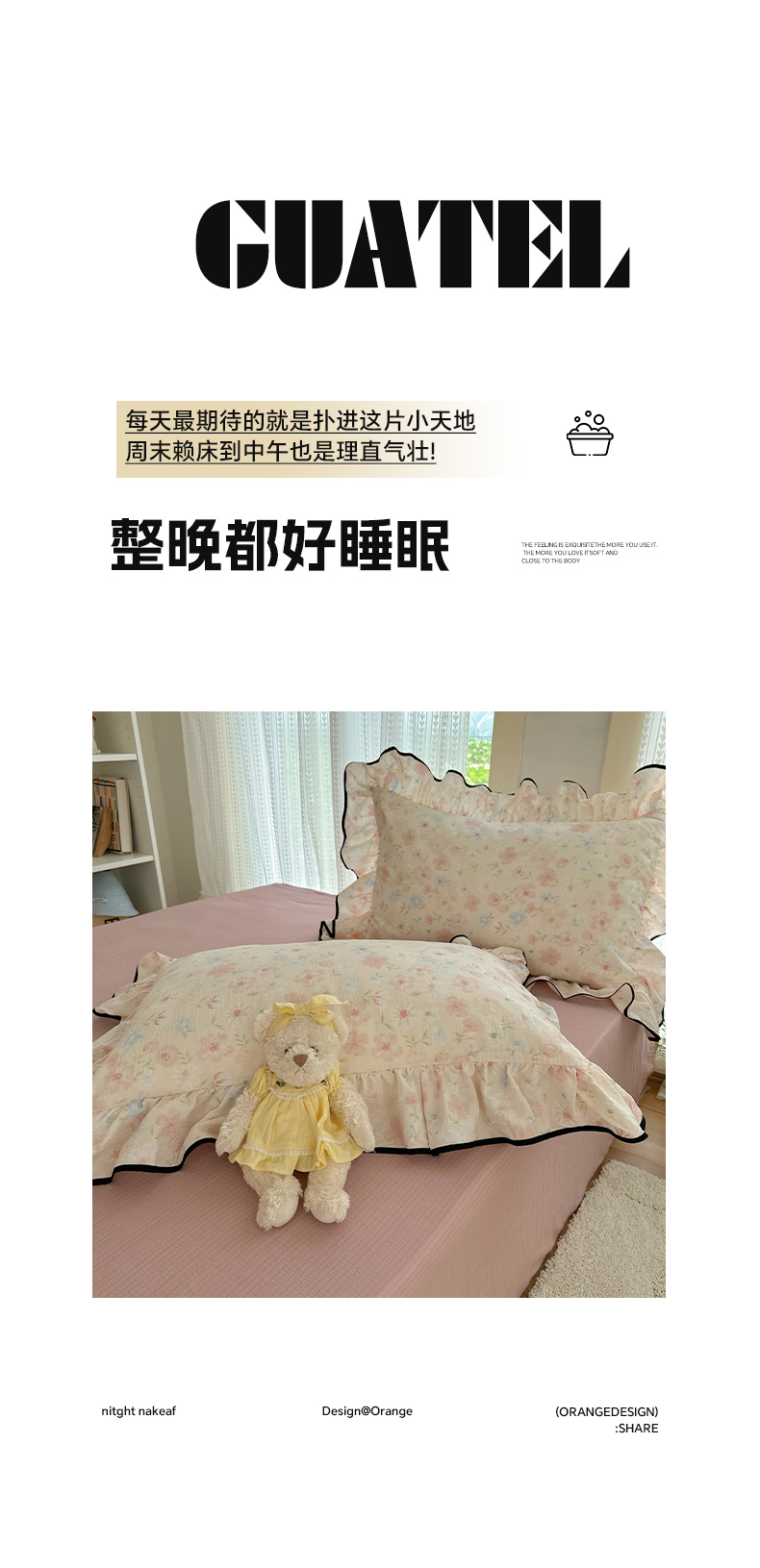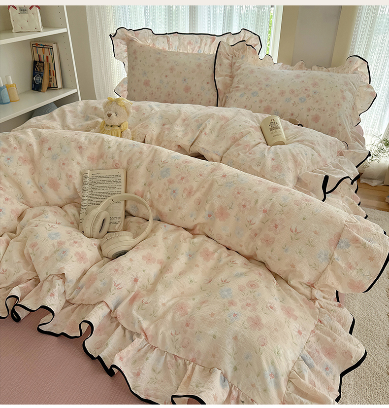 红嘴企鹅 2025新款韩版双拼花边四件套 韩版-柔眠花町