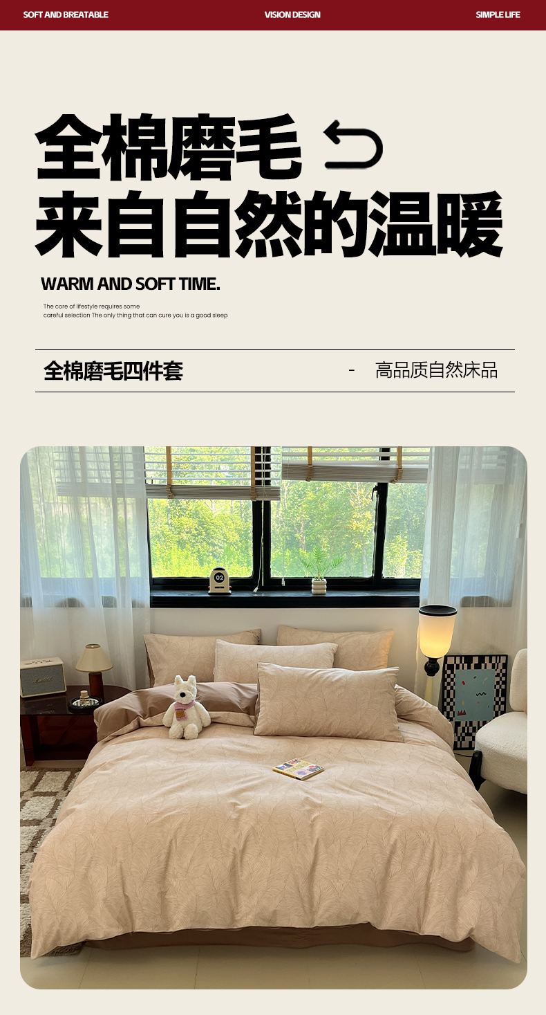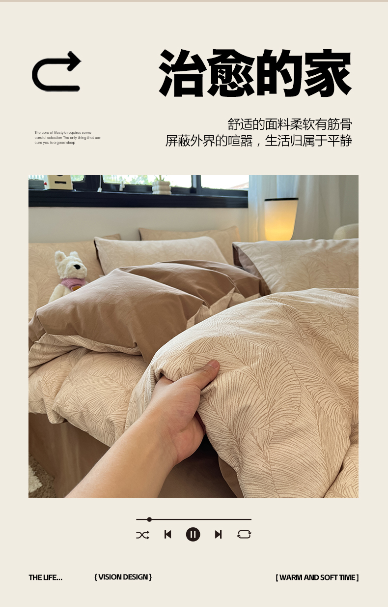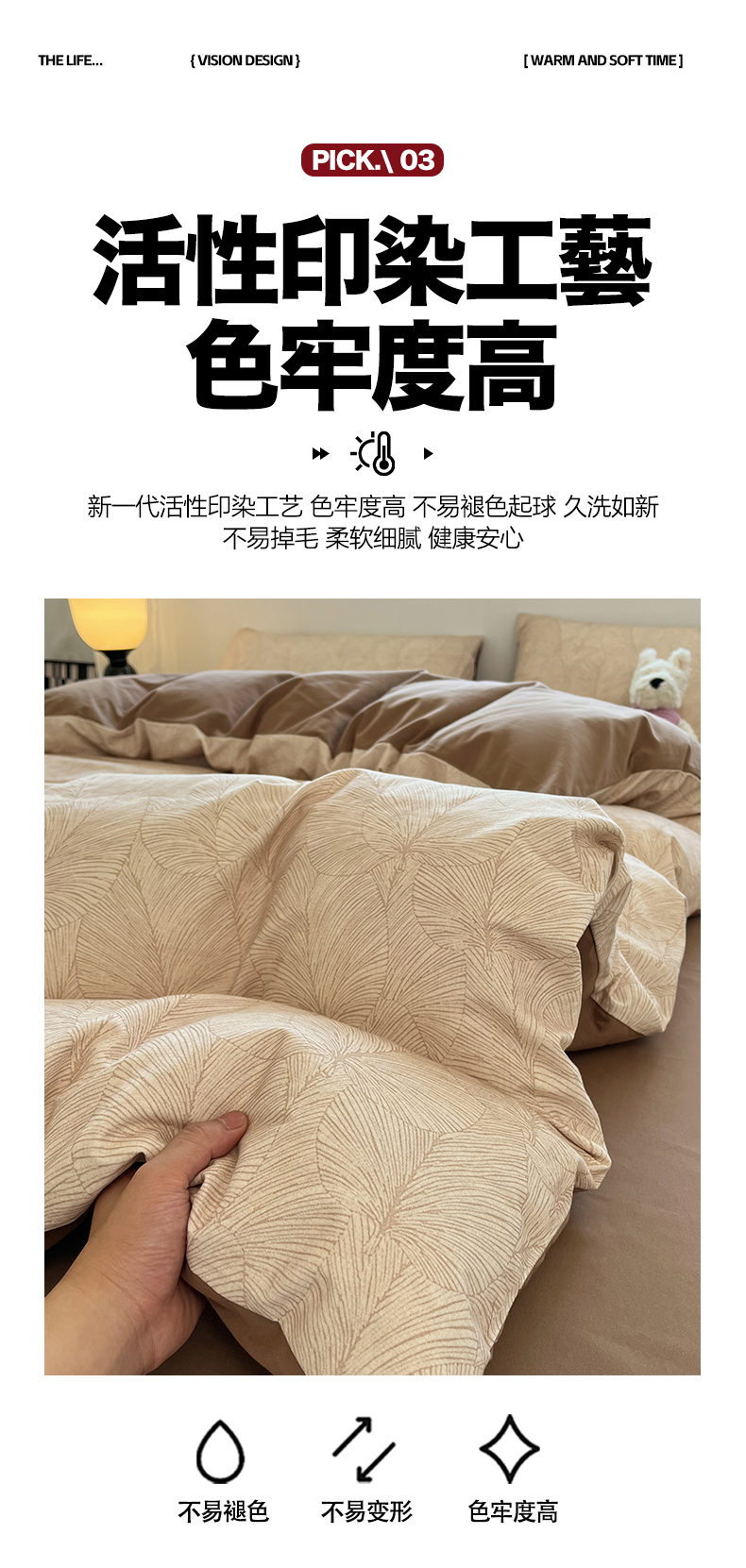 当前位置: 91家纺网 > 商品网购 > 床品套件 > 四件套 > 全棉普通四件套 > 吉象家纺 2025新款全棉纯棉加厚磨毛印花四件套 幸运叶