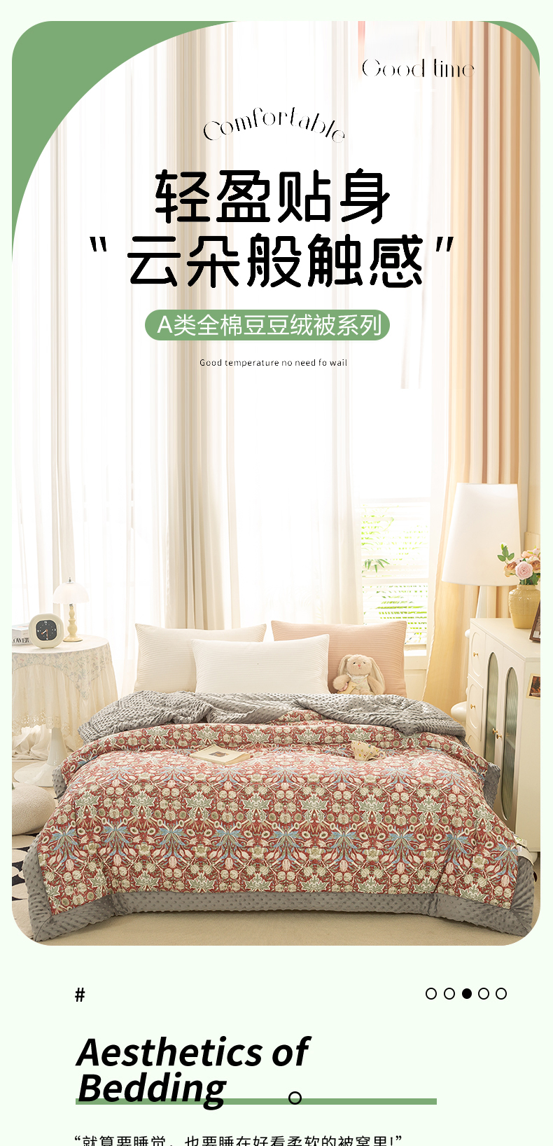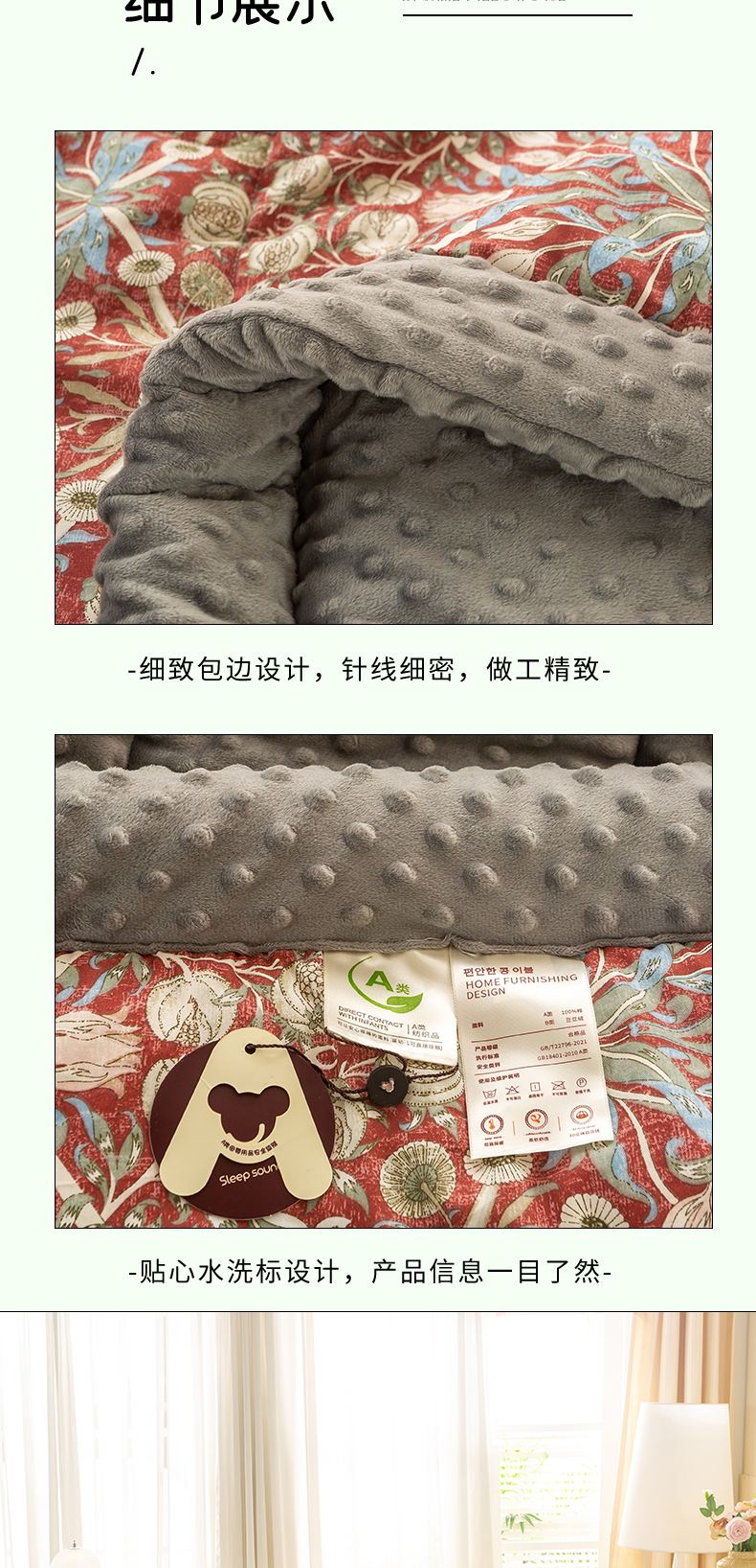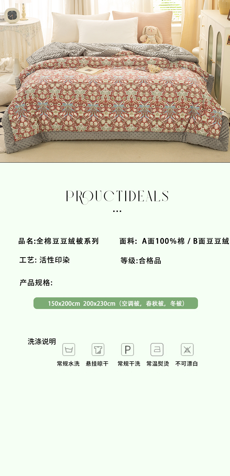 • 91家纺网 家纺一手货源 找家纺 锦鹭被业 2025新款AB版舒适全棉纯棉豆豆绒被被子被芯 克洛伊