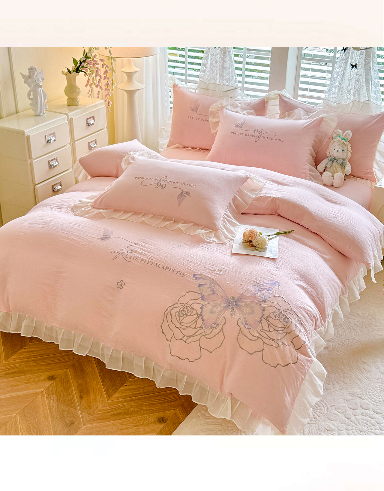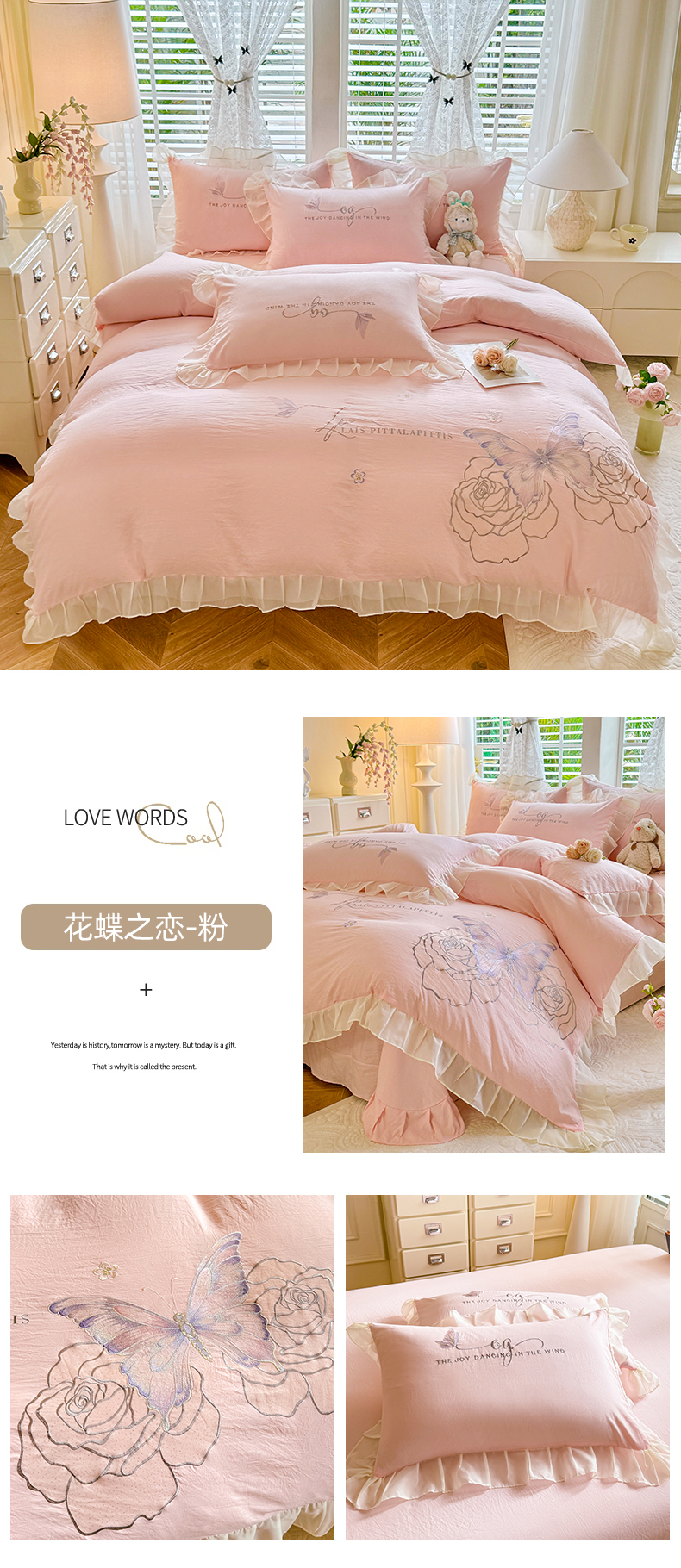 (总)大麦乐田 2025新款法式少女心水洗公主风贴布绣蕾丝花边四件套