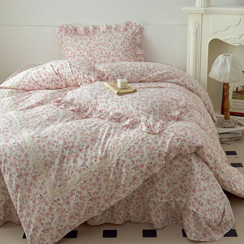 (总)欧尚 2026新款花边床盖四件套,春和,花束,花野,灰樱桃,咖爱心,咖豹纹,咖啡小猫,梨花落,绿爱心,梦境,木马,奶油波点,暖橘枝,暖心,人间草木,田园兔,小女孩,星愿,摇摇马,紫爱心,紫豹纹,紫苏