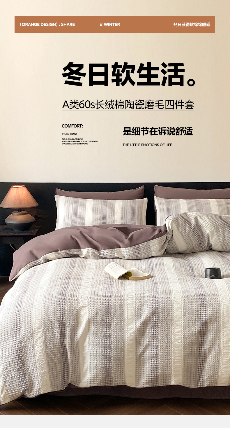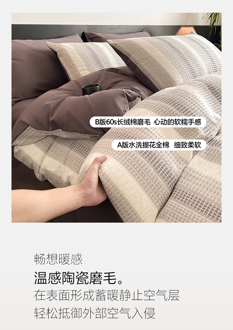 当前位置: 91家纺网 > 商品网购 > 床品套件 > 四件套 > 长绒棉四件套 > 言一 2025秋冬新品A类60S新疆长绒棉纯棉陶瓷轻磨毛四件套水洗棉提花全棉床单被套 流光-渐变咖