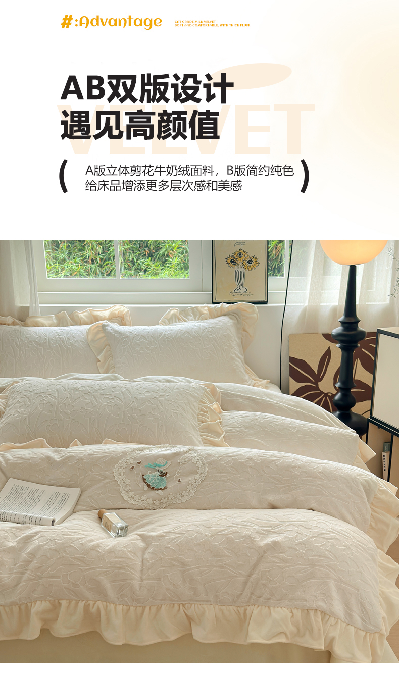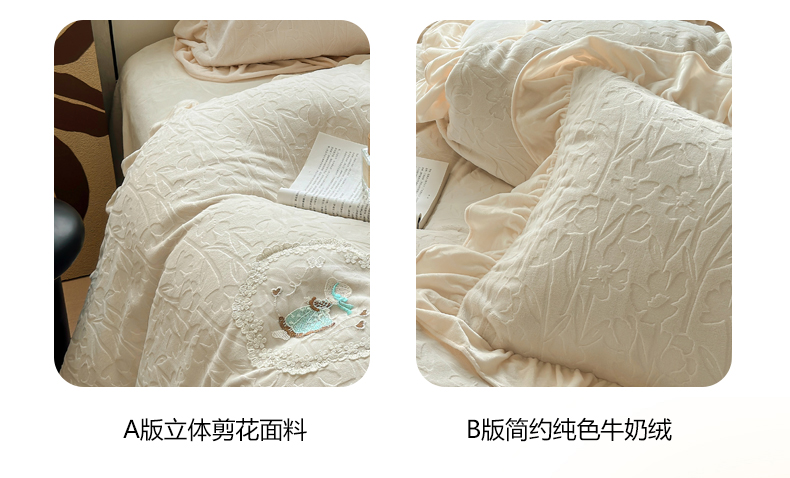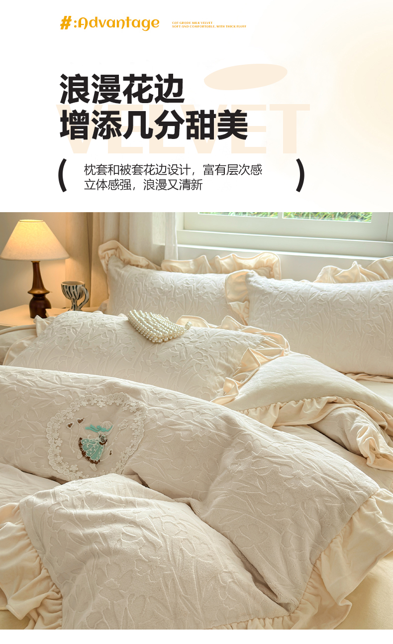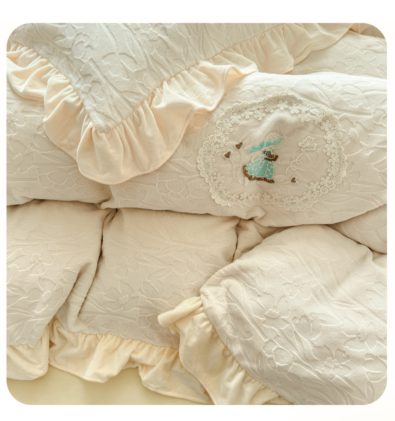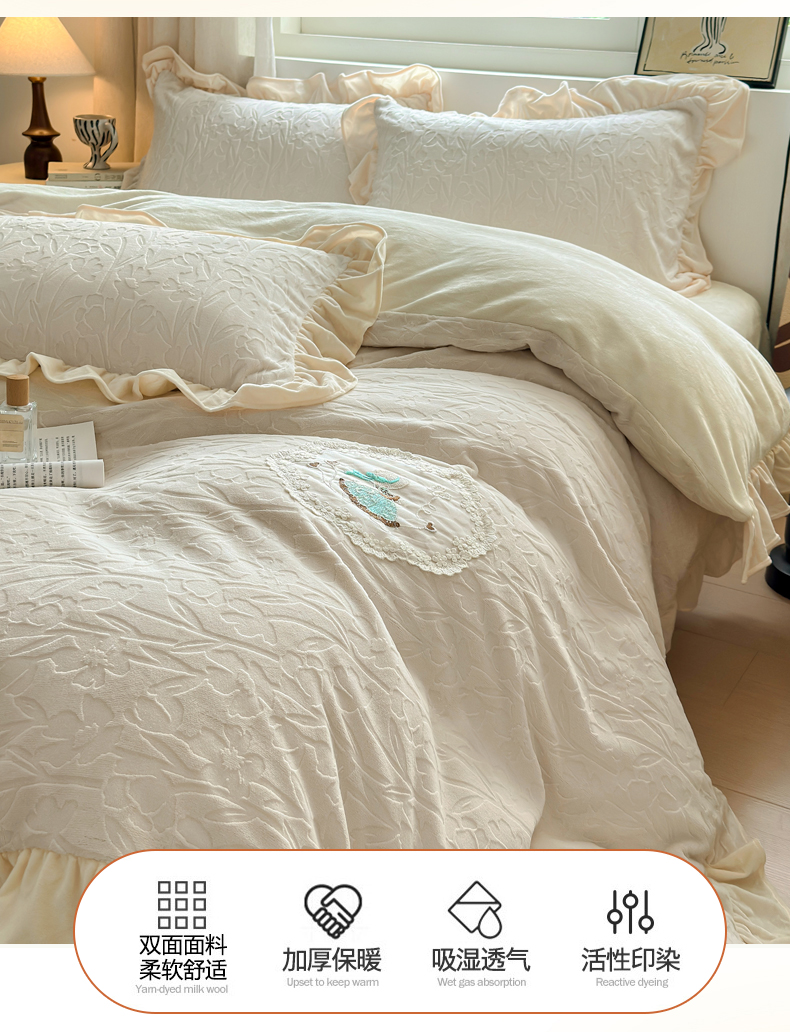 当前位置: 91家纺网 > 商品网购 > 床品套件 > 四件套 > 牛奶绒四件套 > 兰紫橙家纺 2025新款韩式花边款剪花提花牛奶绒四件套 花边款-一路生花-米咖