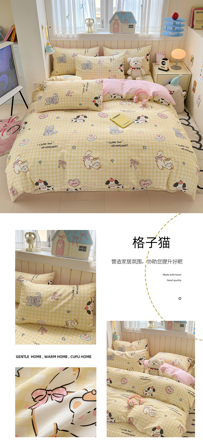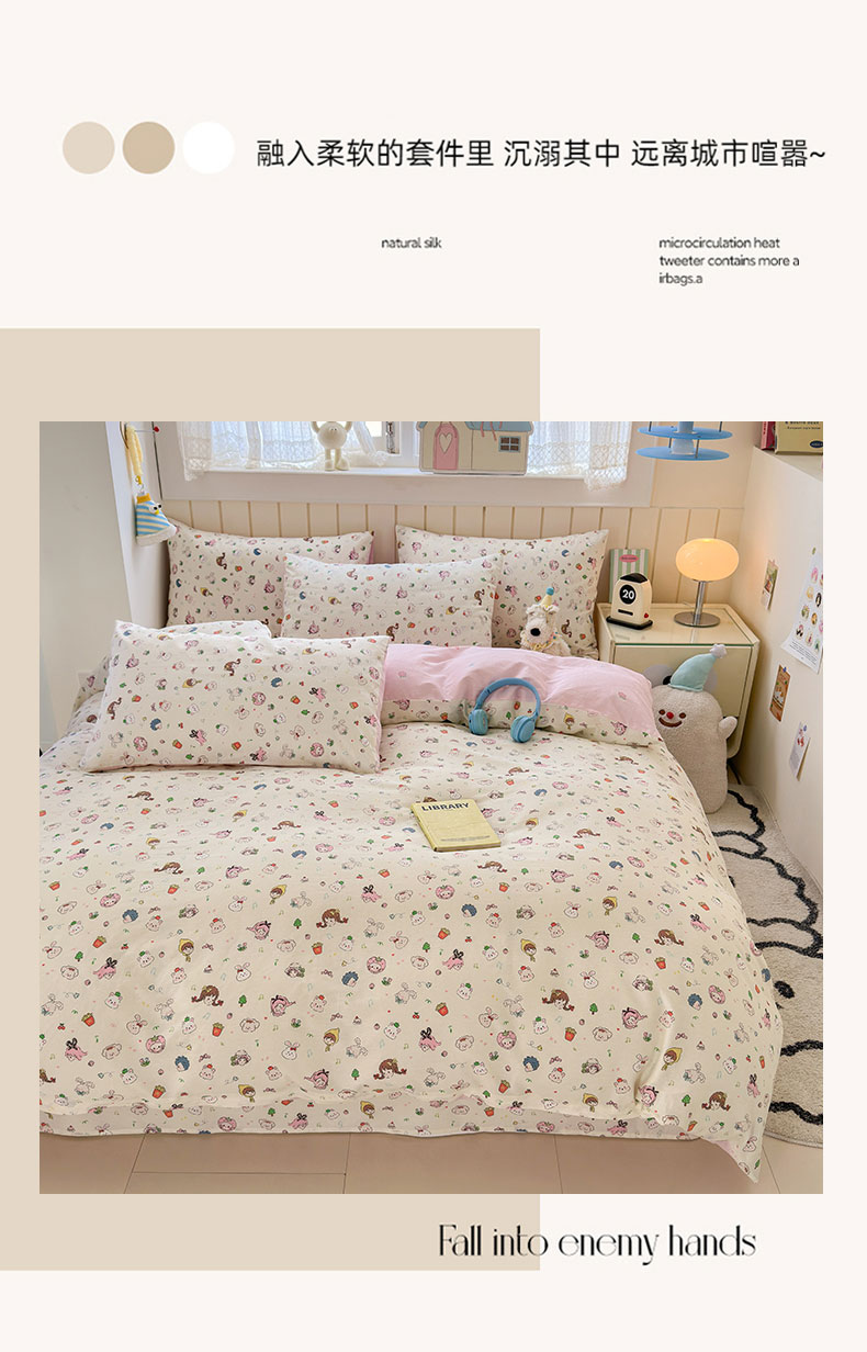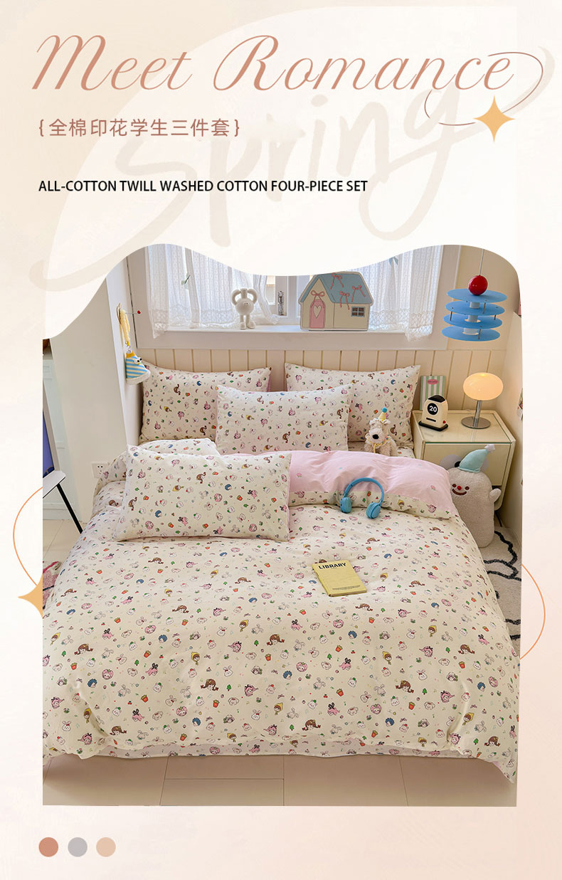 当前位置: 91家纺网 > 商品网购 > 床品套件 > 四件套 > 全棉普通四件套 > 曼之夏 2025新款全棉纯棉40支学生季卡通印花四件套 玛奇朵