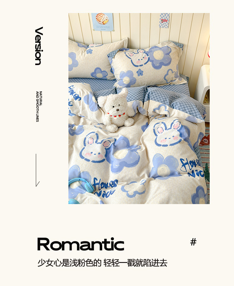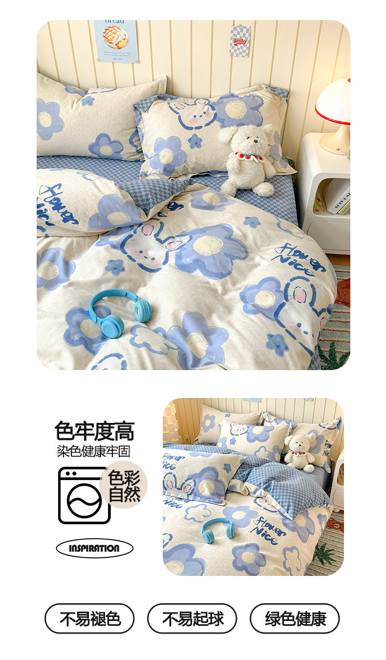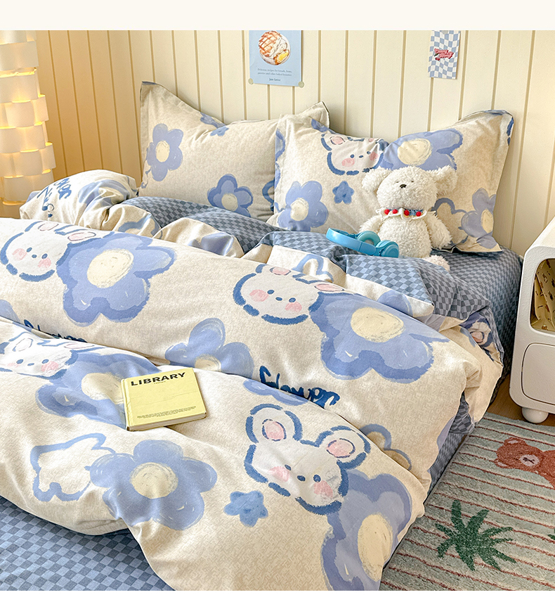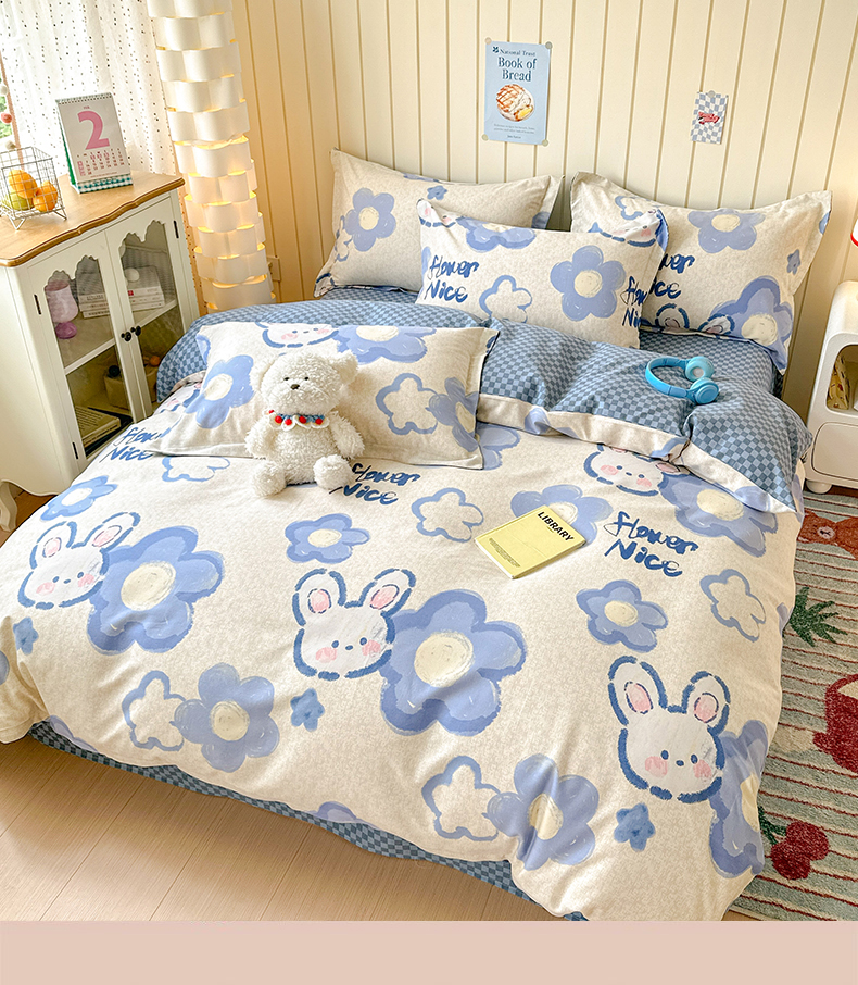 当前位置: 91家纺网 > 商品网购 > 床品套件 > 四件套 > 普通磨毛四件套 > 曼之夏 2025新款原棉加厚磨毛印花四件套 布鲁兔