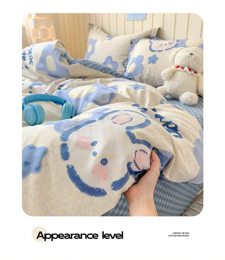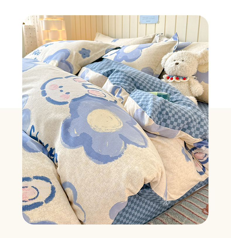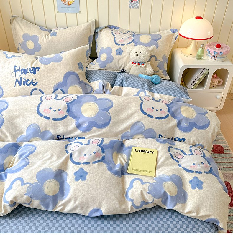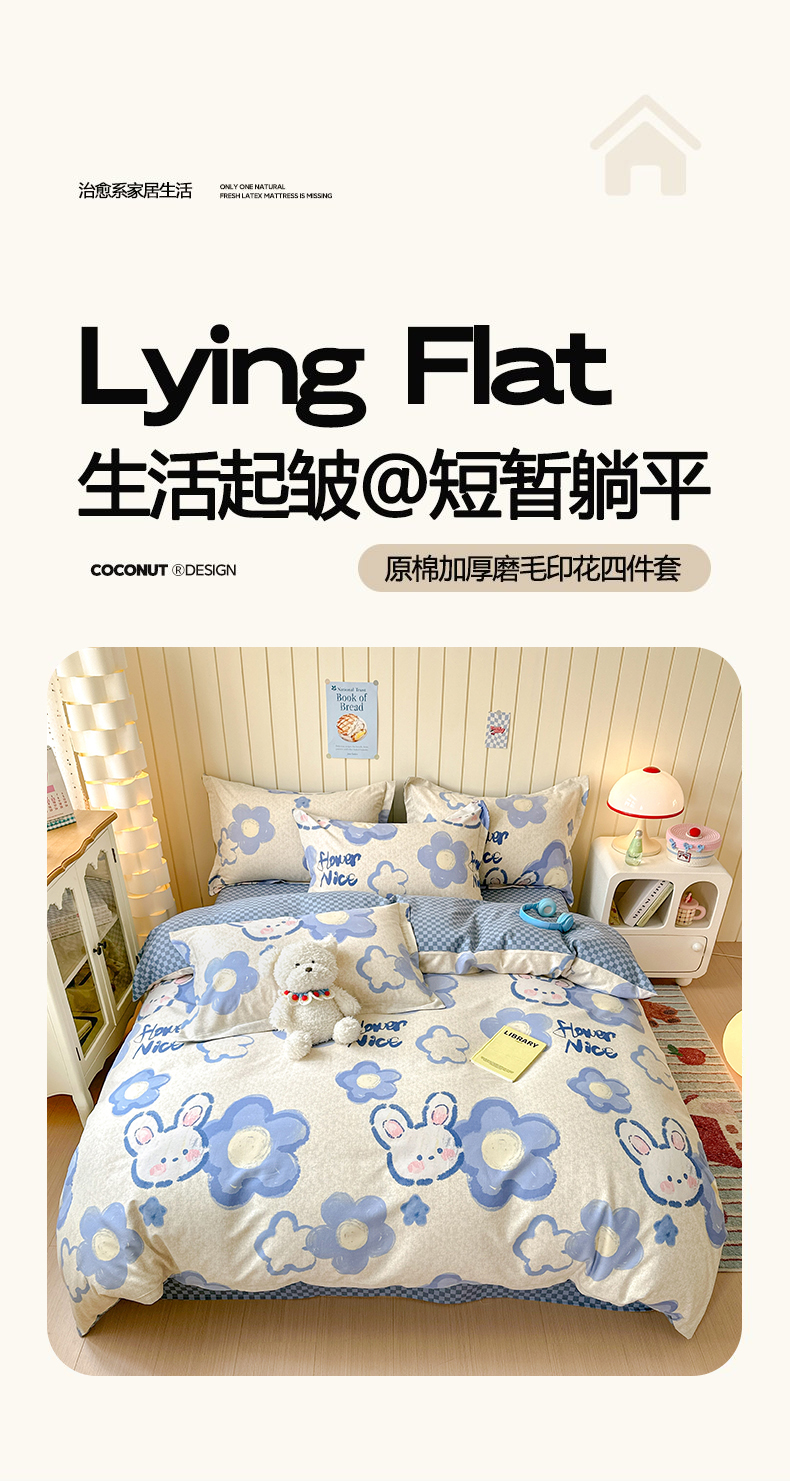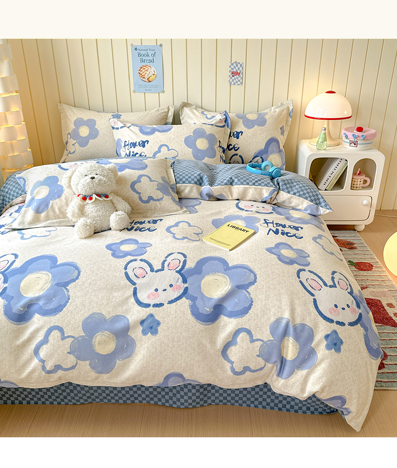 当前位置: 91家纺网 > 商品网购 > 床品套件 > 四件套 > 普通磨毛四件套 > 曼之夏 2025新款原棉加厚磨毛印花四件套 布鲁兔