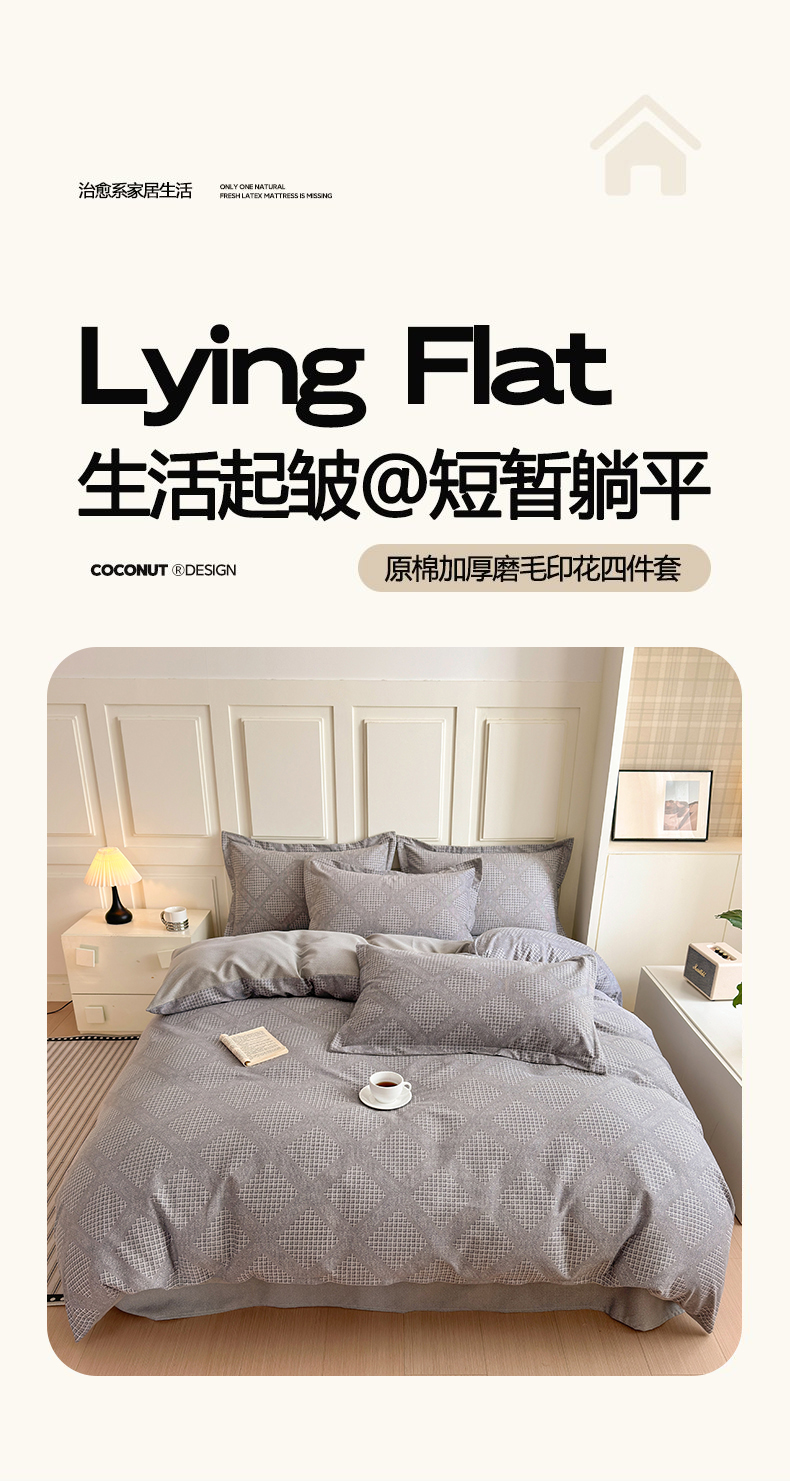 当前位置: 91家纺网 > 商品网购 > 床品套件 > 四件套 > 普通磨毛四件套 > 曼之夏 2025新款原棉加厚磨毛印花四件套 轻奢生活