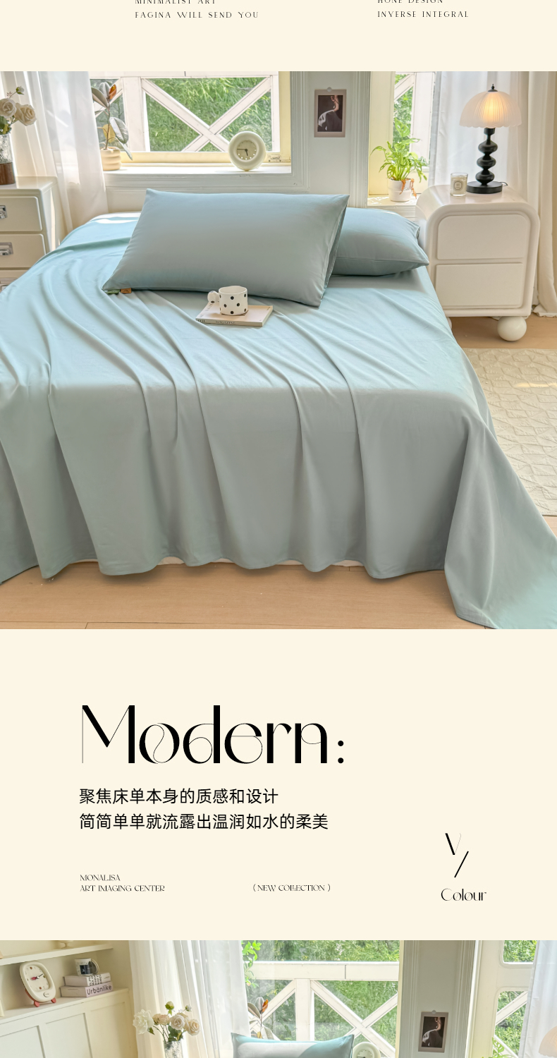 • 91家纺网 家纺一手货源 找家纺 (总)凡客家居 2025新款全棉纯色简约单品床单系列,蔚蓝,冰川灰,丁香紫,豆沙粉,茉莉黄,奶茶,嫩芽绿,仙女粉,雅灰,氧气蓝,中绿,组合图