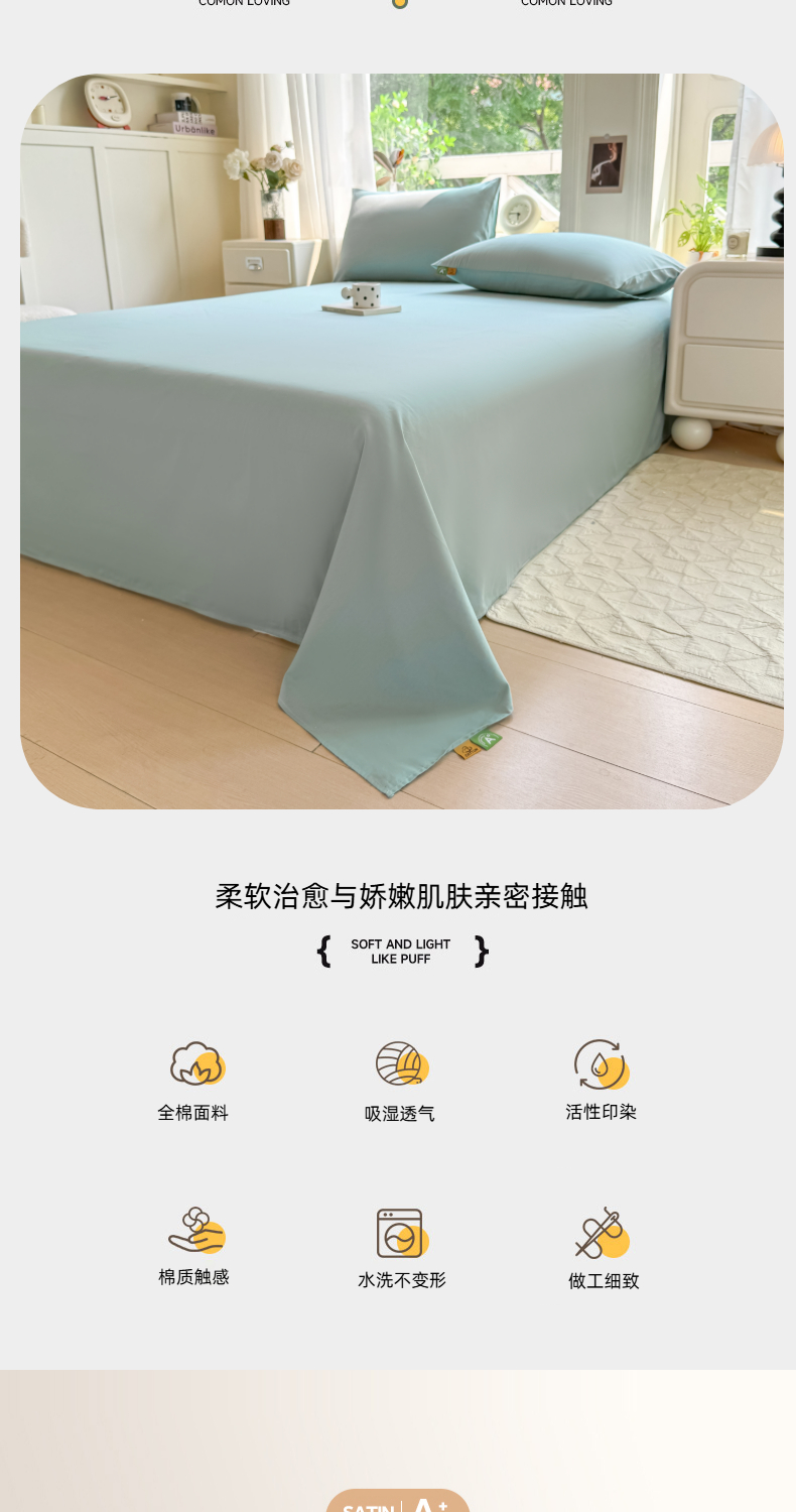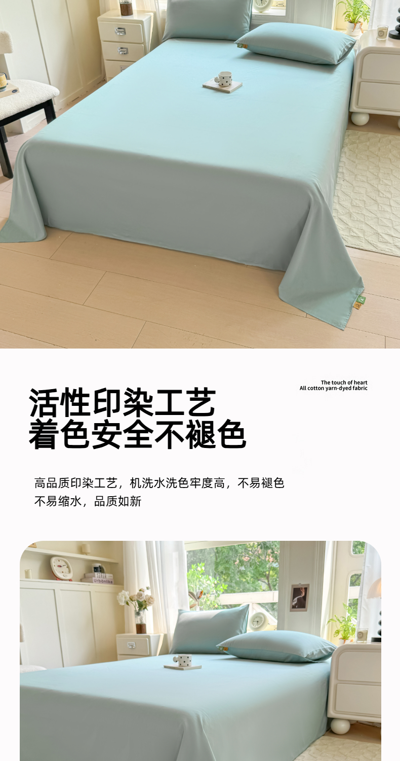 (总)凡客家居 2025新款全棉纯色简约单品床单系列,蔚蓝,冰川灰,丁香紫,豆沙粉,茉莉黄,奶茶,嫩芽绿,仙女粉,雅灰,氧气蓝,中绿,组合图