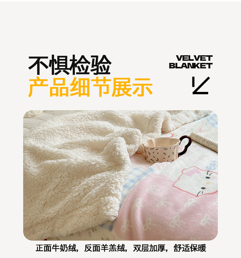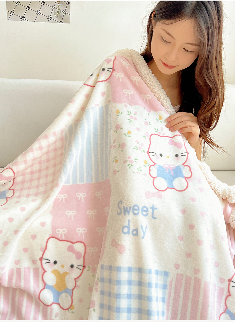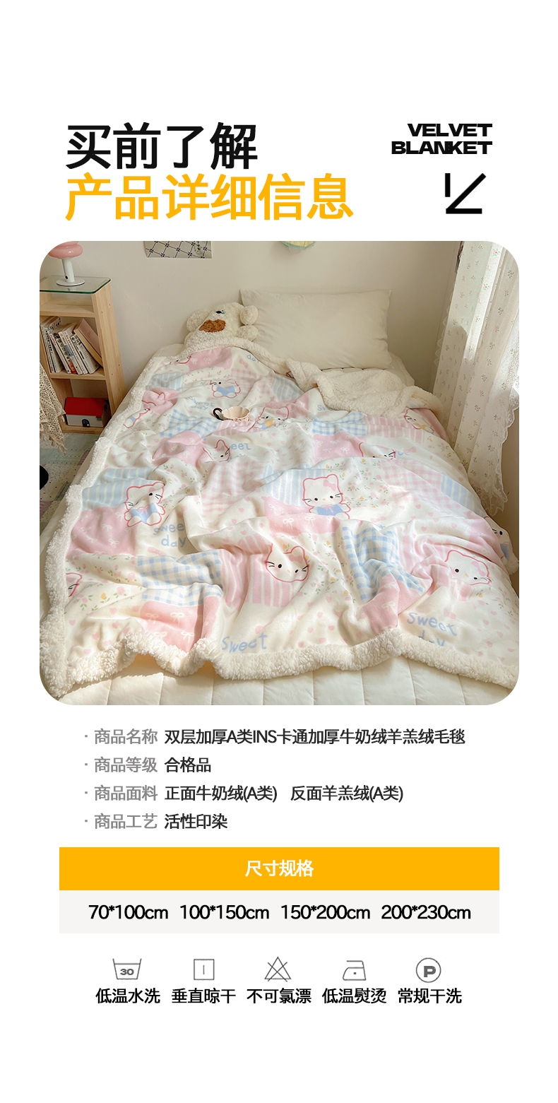 商品名称:桃子家居 2025新款A类ins小清新少女可爱奶油猫咪卡通加厚牛奶绒羊羔绒毛毯多功能毛毯 绒毛毯-MT花小猫