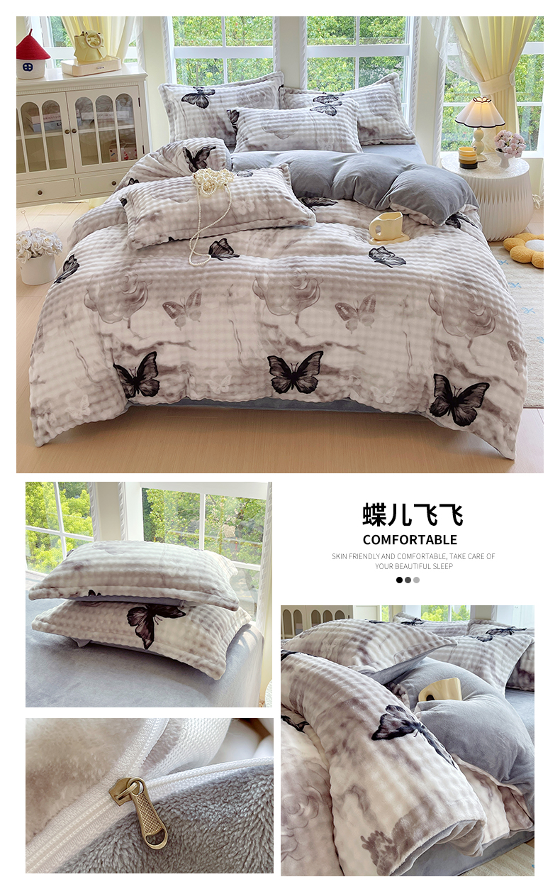 (总)凯儿家纺 2025新款全消光牛奶绒法式公主风花边工艺款四件套-蝴蝶恋曲,蝴蝶恋曲-咖
