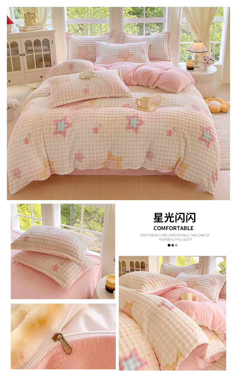 商品名称:凯儿家纺 2025新款兔毛牛奶泡泡绒单被套单品被套被套单件 星光闪闪