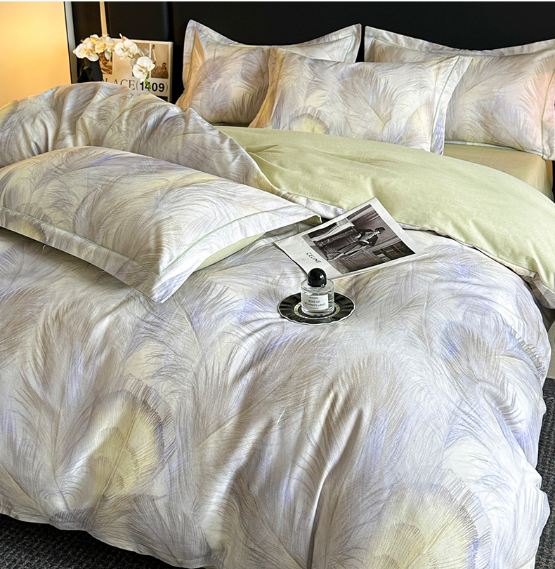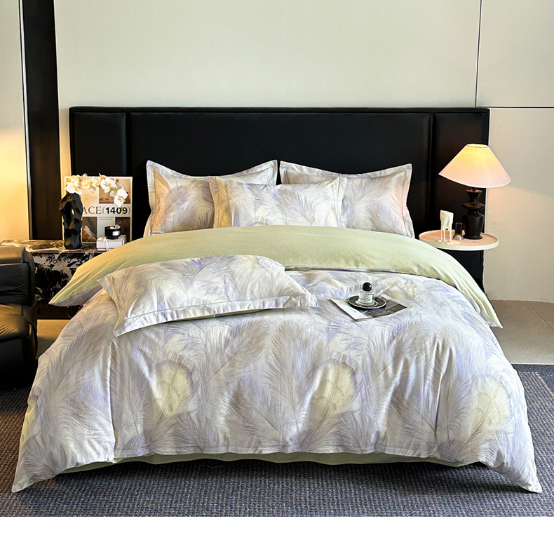 海洋家纺 2025新款100%全棉磨毛数码印花四件套加厚全棉四件套-提供买家秀 羽纱 浅绿