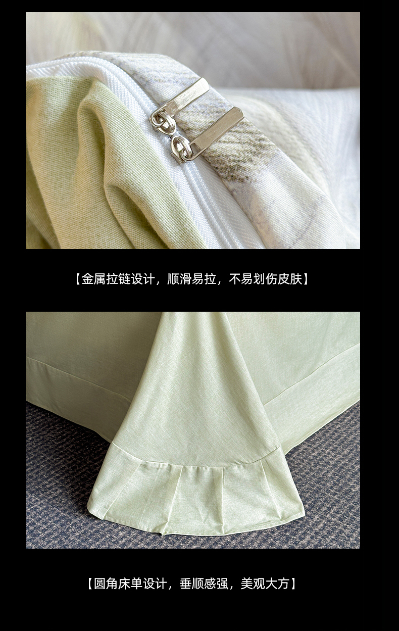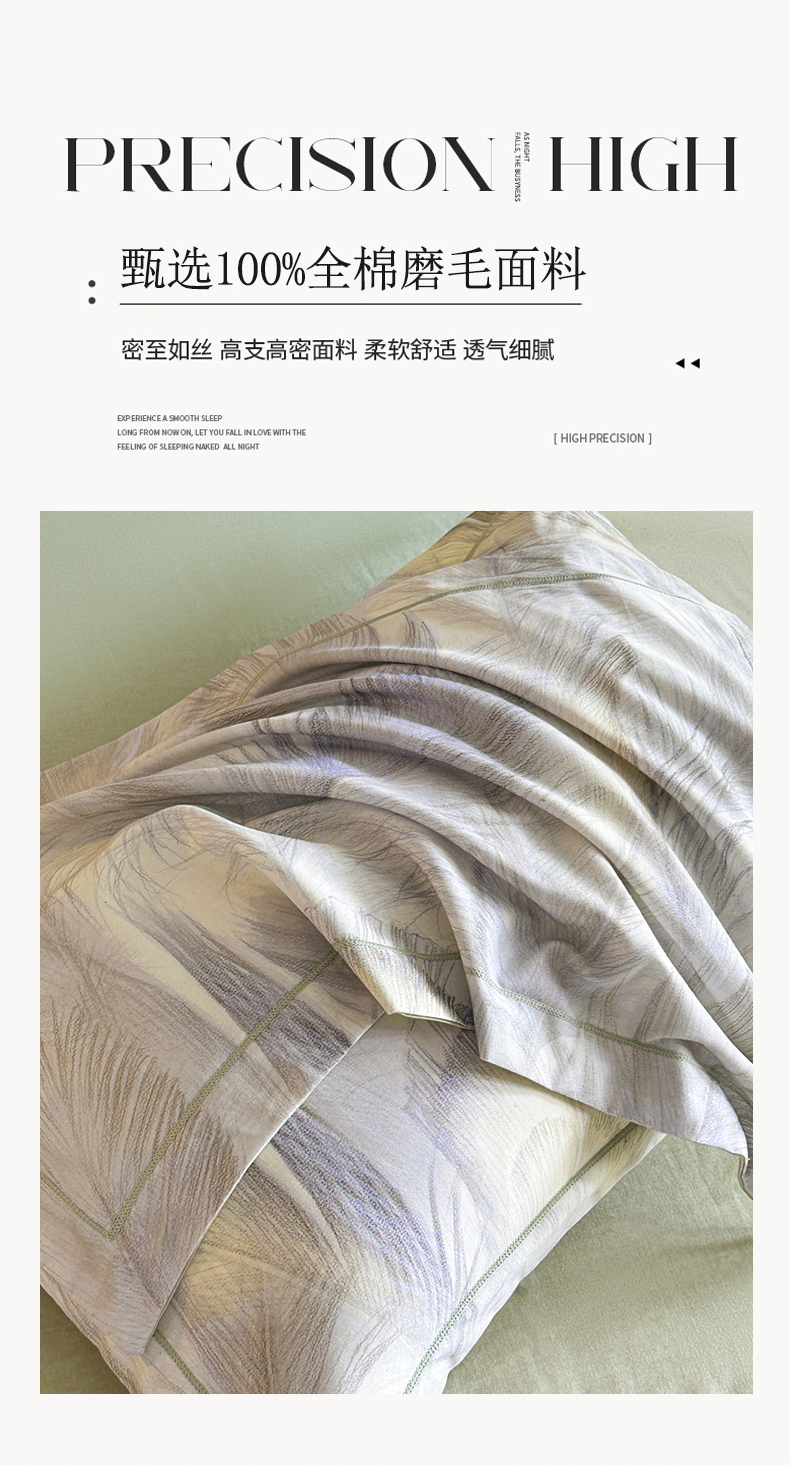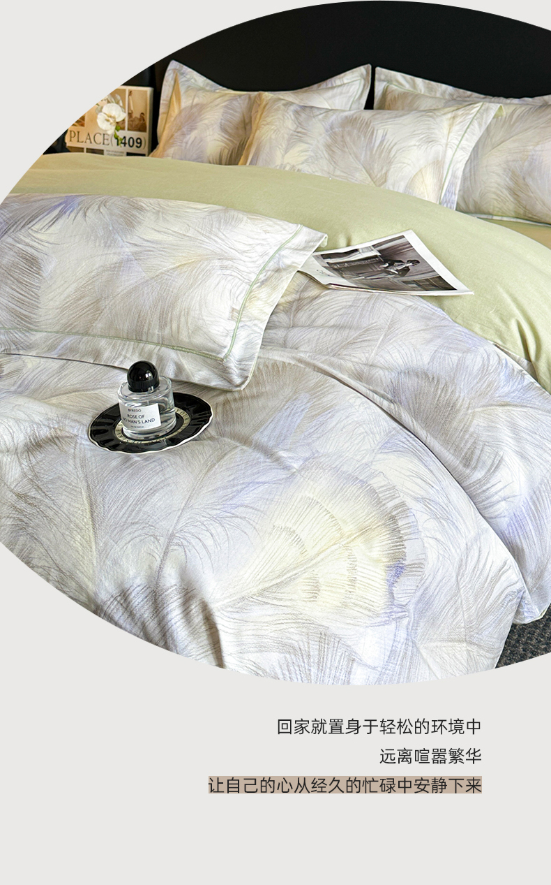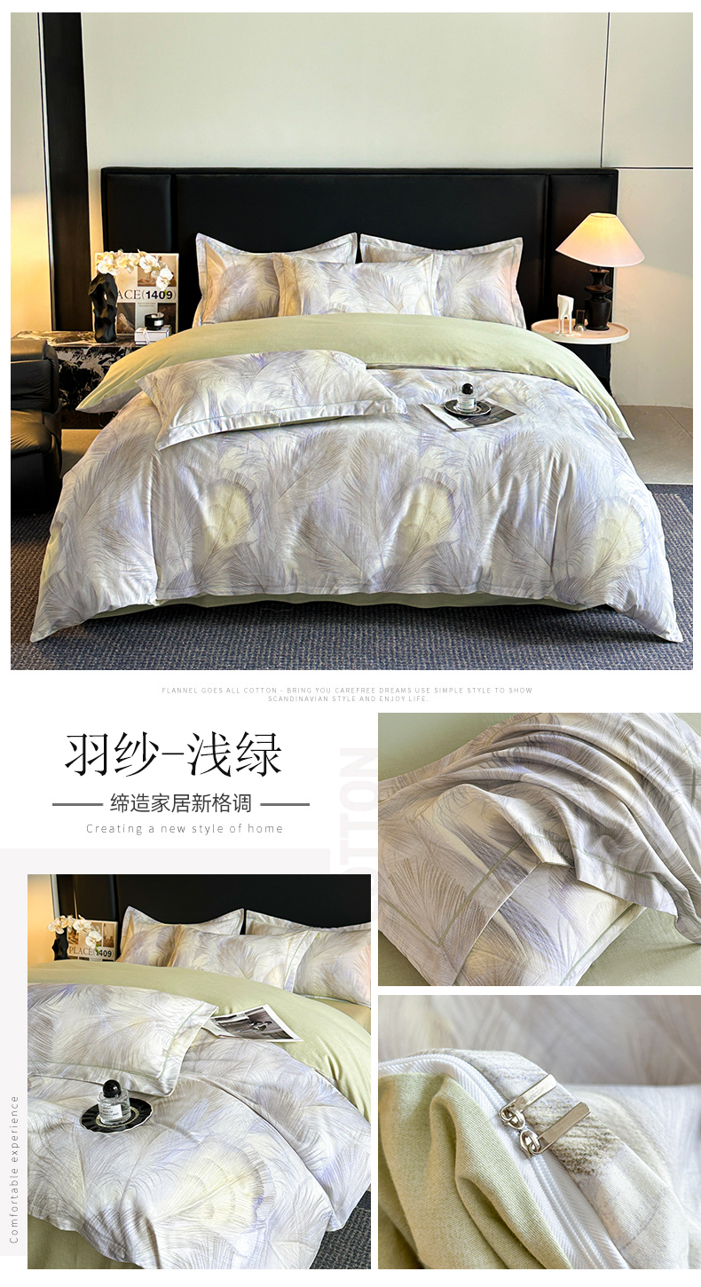 商品名称:海洋家纺 2025新款100%全棉磨毛数码印花四件套加厚全棉四件套-提供买家秀 羽纱 浅绿