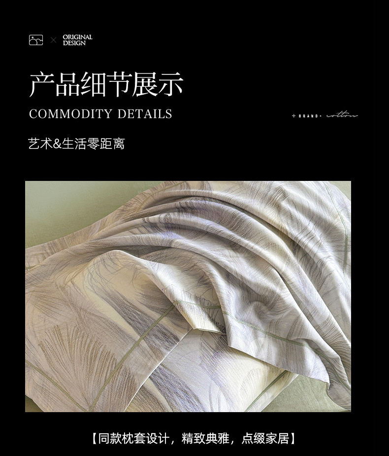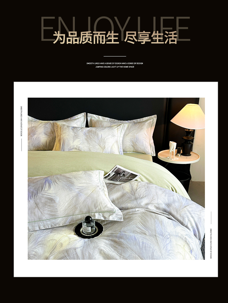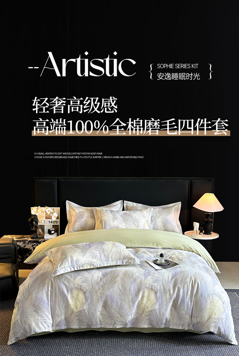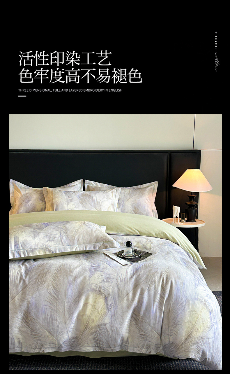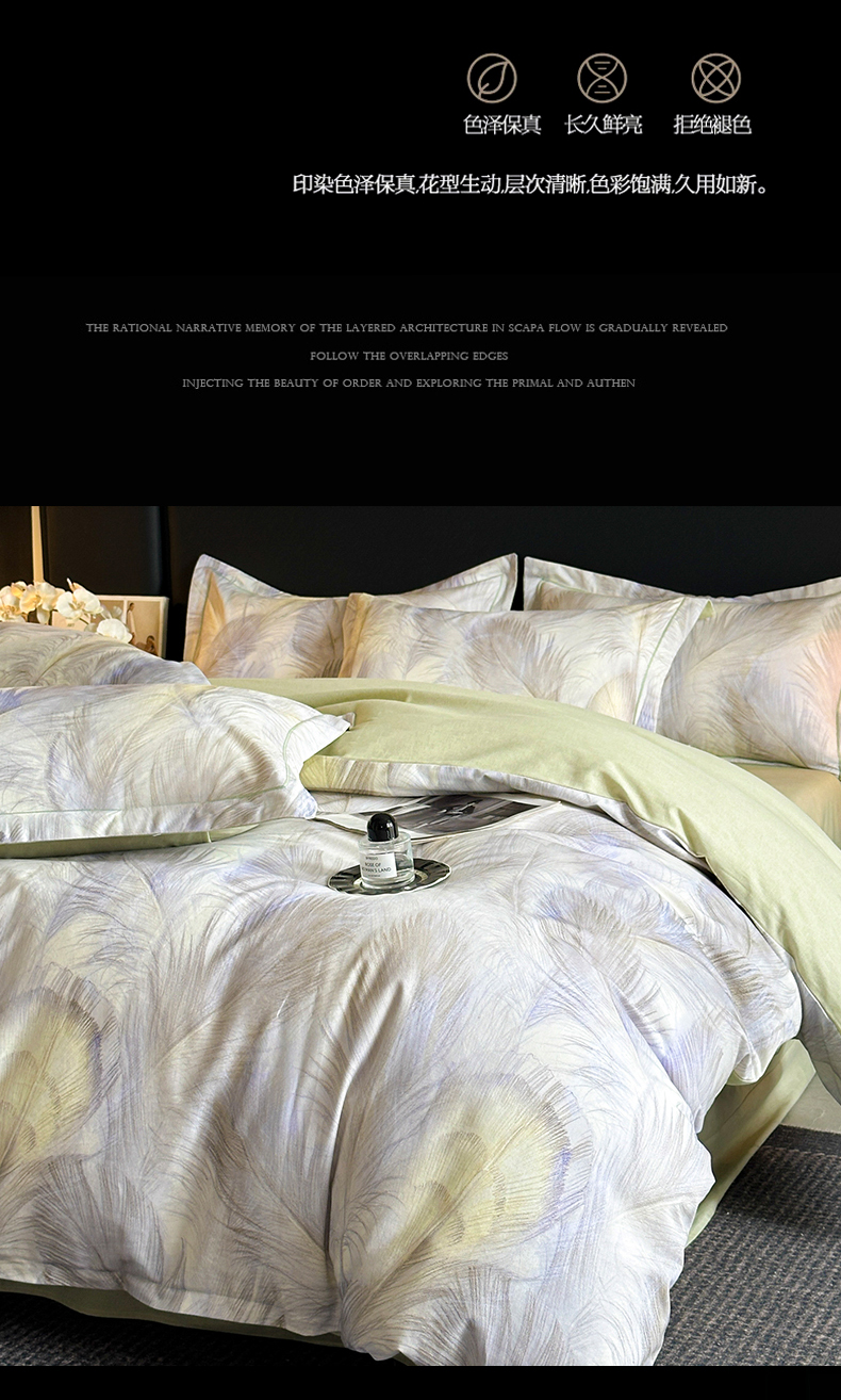 商品名称:海洋家纺 2025新款100%全棉磨毛数码印花四件套加厚全棉四件套-提供买家秀 羽纱 浅绿