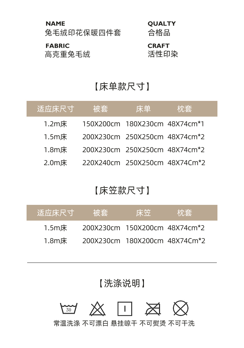 商品名称:(总)金阳光家纺 2025新款A类高克重兔毛绒保暖印花牛奶绒四件套 美拉德系列