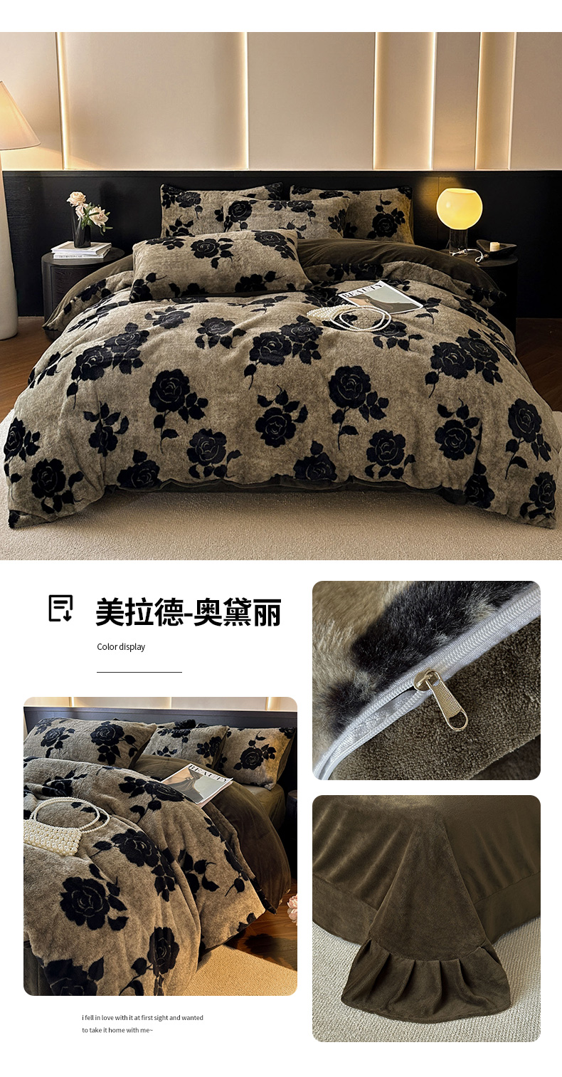 当前位置: 91家纺网 > 商品网购 > 床品套件 > 四件套 > 牛奶绒四件套 > 金阳光家纺 2025新款A类高克重兔毛绒保暖印花牛奶绒四件套 美拉德系列 美拉德-玫瑰白
