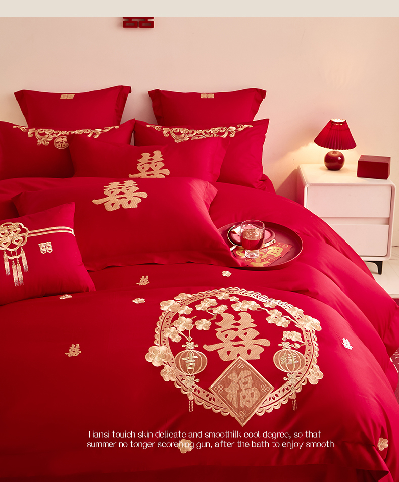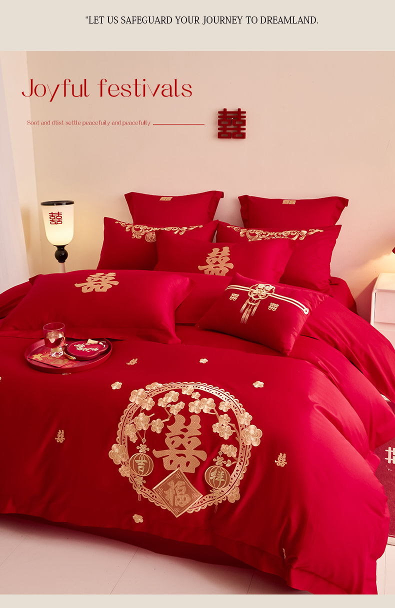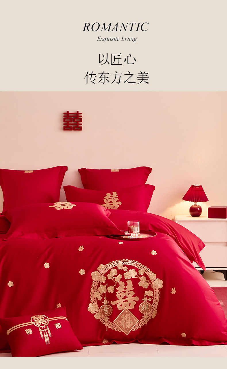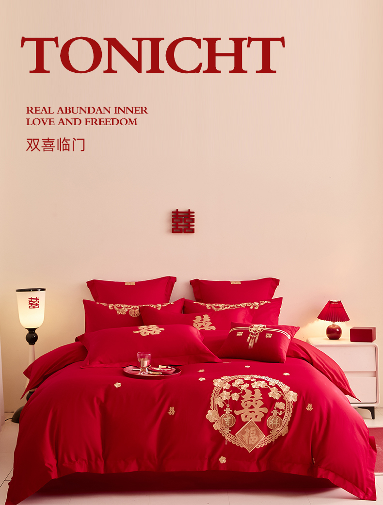 当前位置: 91家纺网 > 商品网购 > 床品套件 > 四件套 > 其它四件套 > 东方合美(原:皇家传奇) 2025新款婚庆小红书化纤系列二 双喜临门