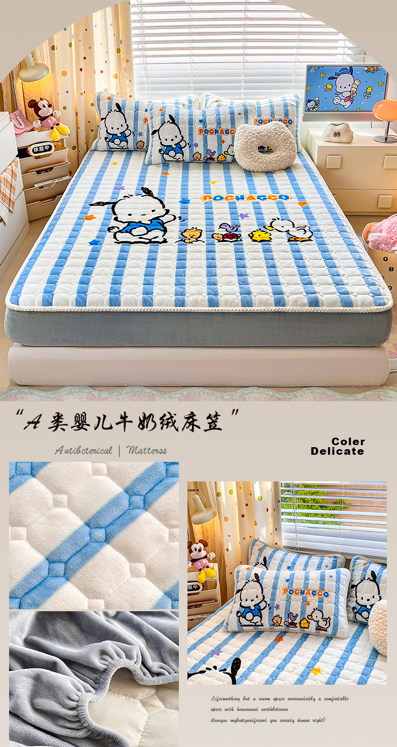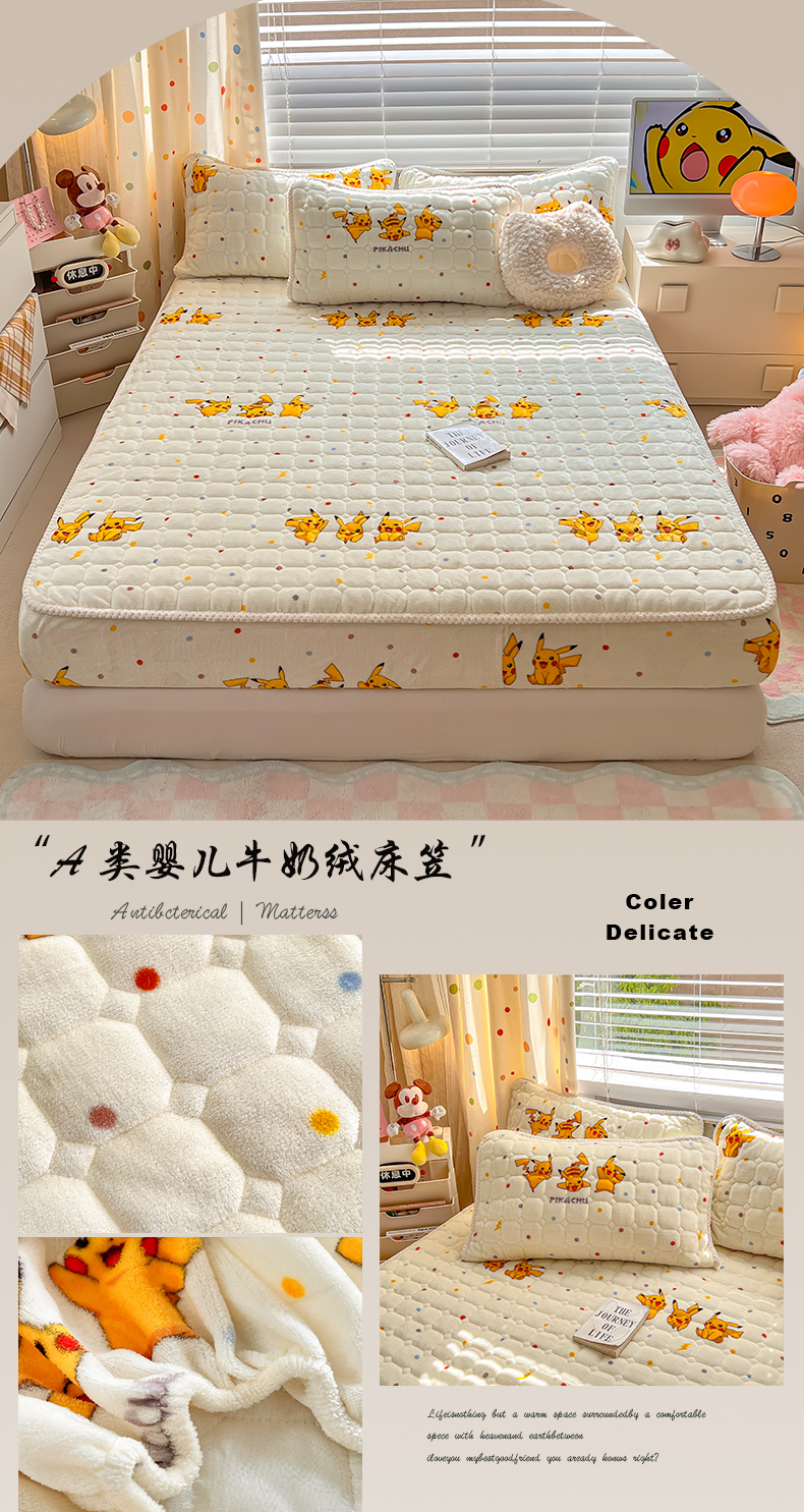 (总)徕米家居 2025新款牛奶绒加棉床笠单品床笠单件单床笠,Q版皮卡丘,波点皮卡丘,大版大耳狗,大版库洛米,大版美乐蒂,大版喷火龙,欢乐帕恰狗,杰尼龟,皮卡丘伙伴,小火龙