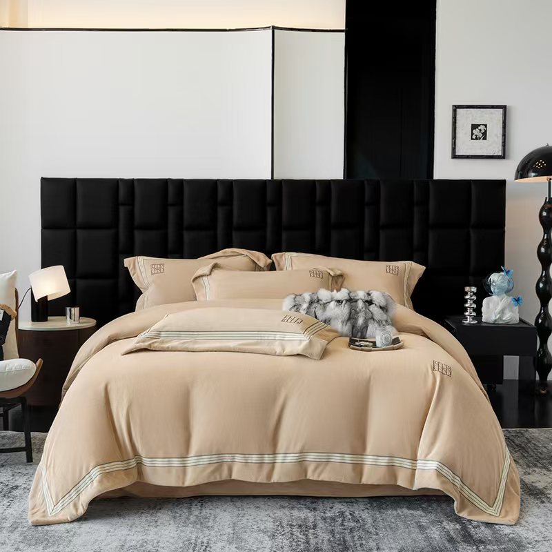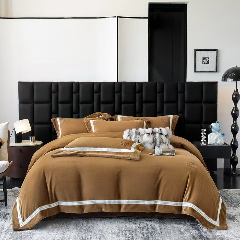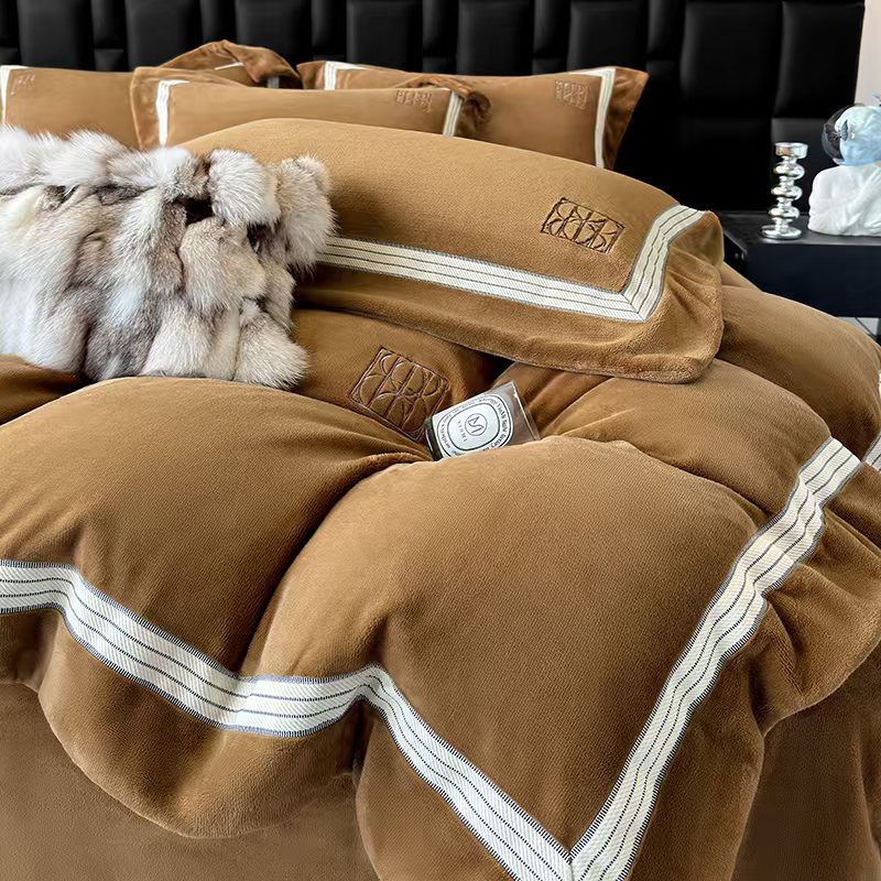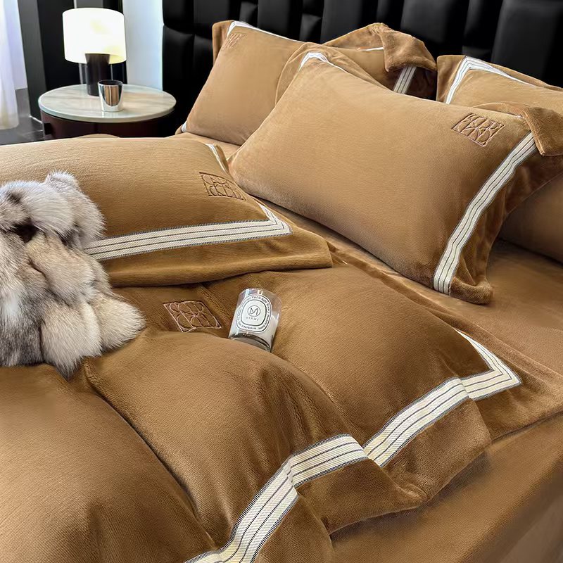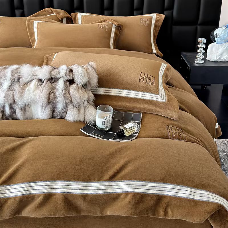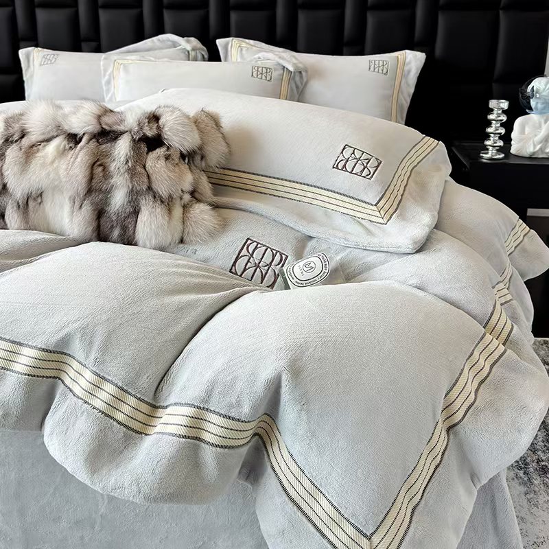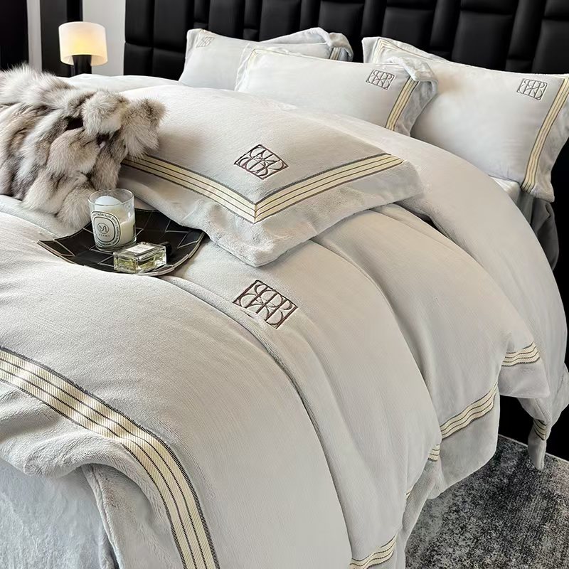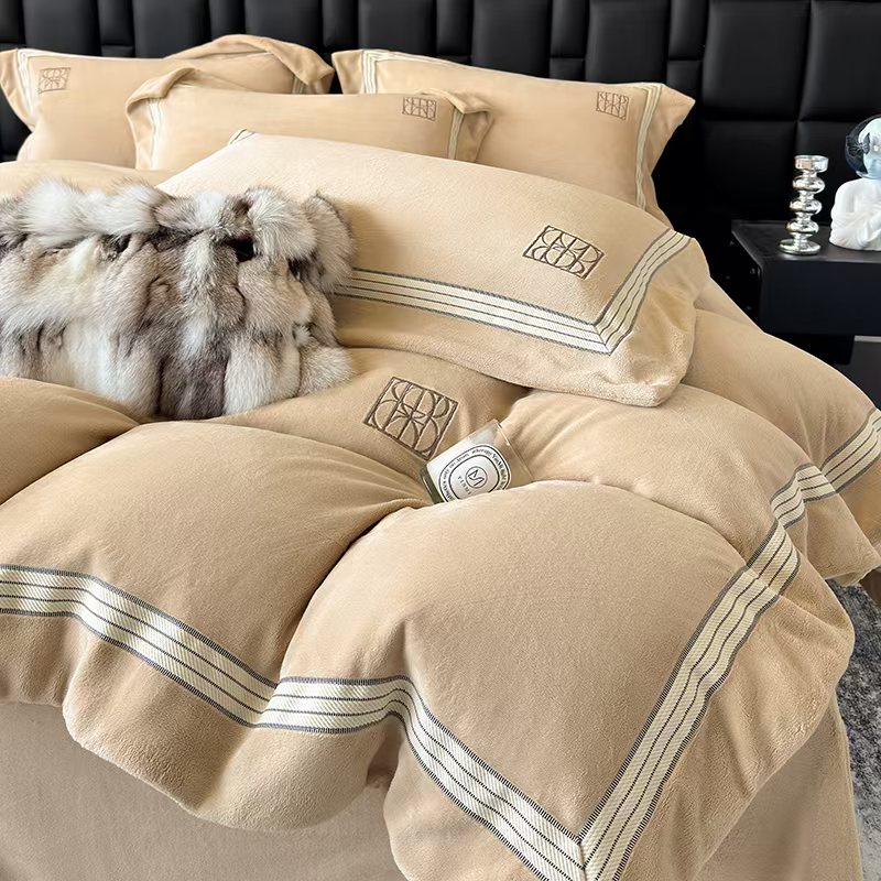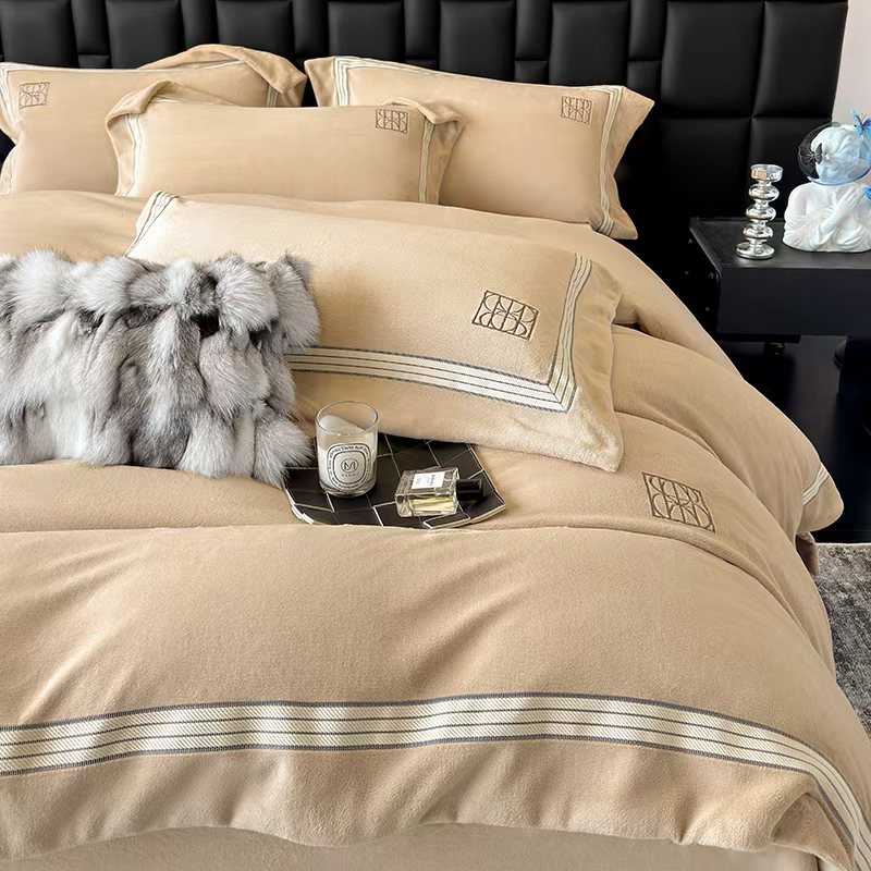 (总)席之家 2025新款280克全消光刺绣牛奶绒四件套