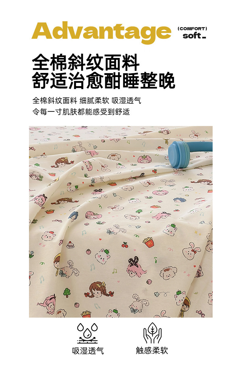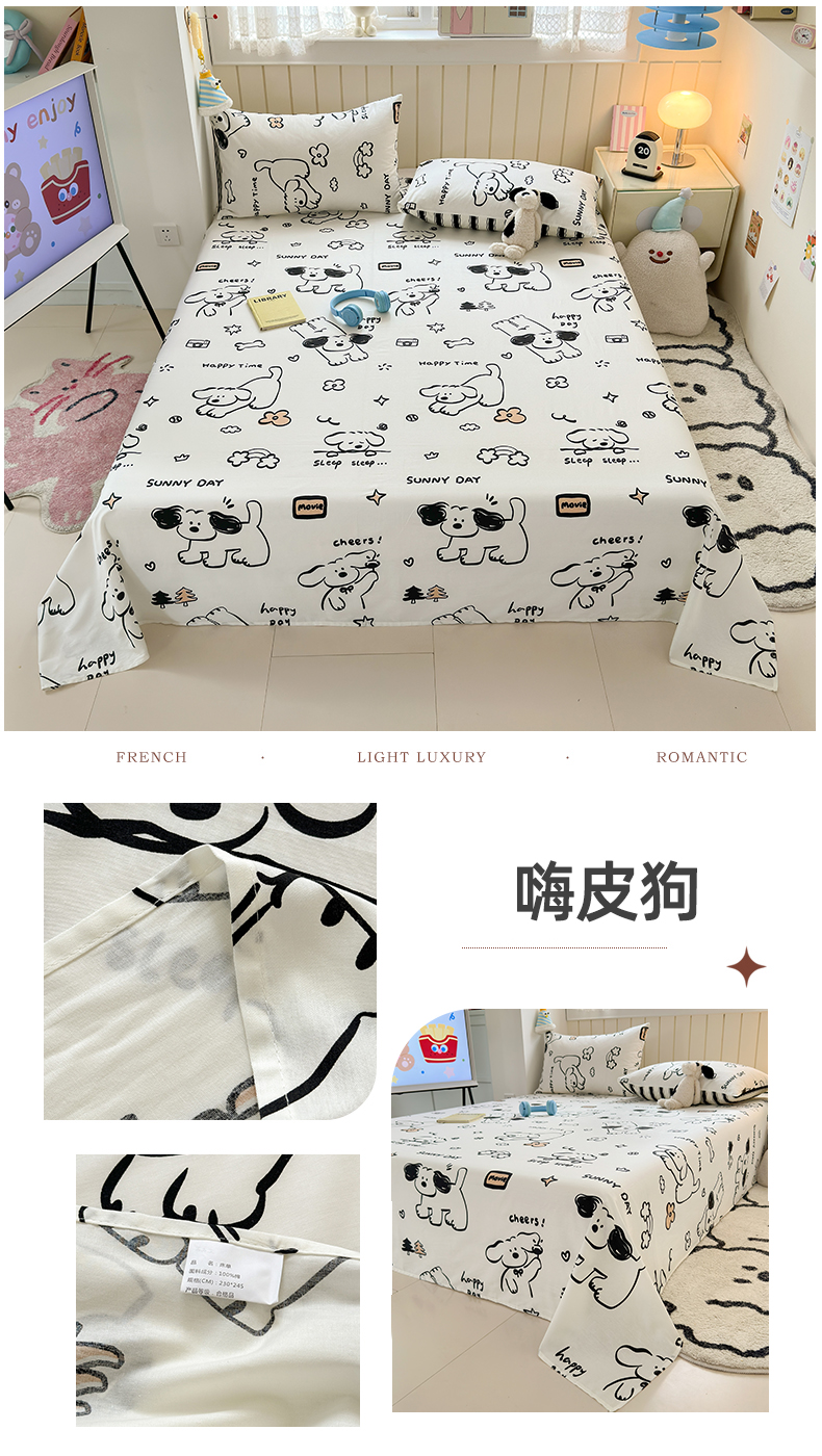 • 91家纺网 家纺一手货源 找家纺 典曼家纺 2025新款40支学生季卡通印花床单单床单床单单件 玛奇朵