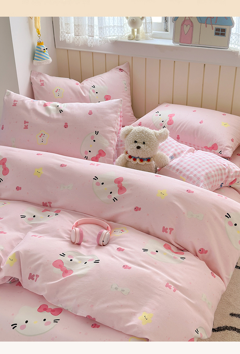 当前位置: 91家纺网 > 商品网购 > 床品套件 > 四件套 > 全棉普通四件套 > 典曼家纺 2025新款40支学生季卡通印花四件套 甜心猫咪