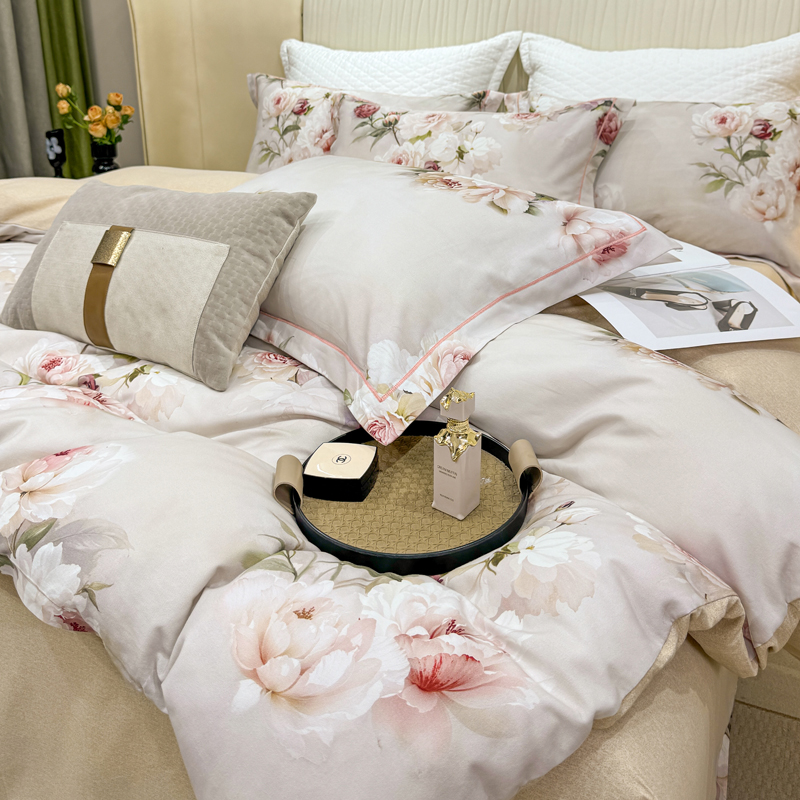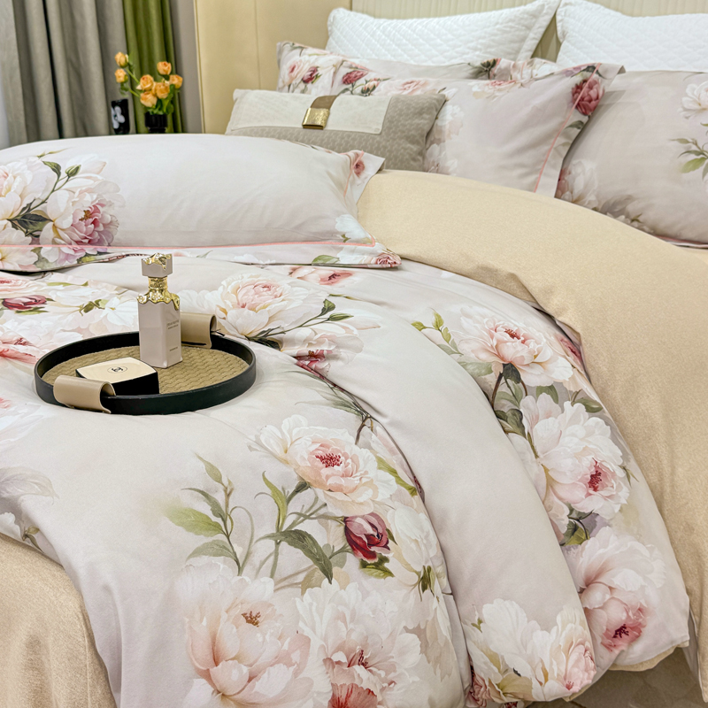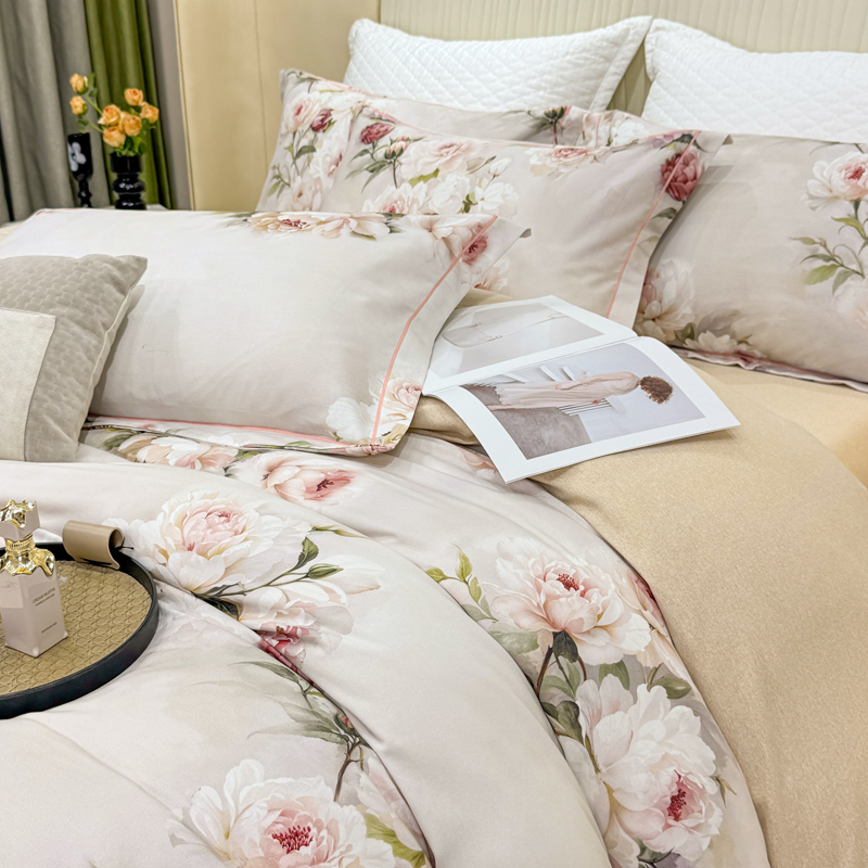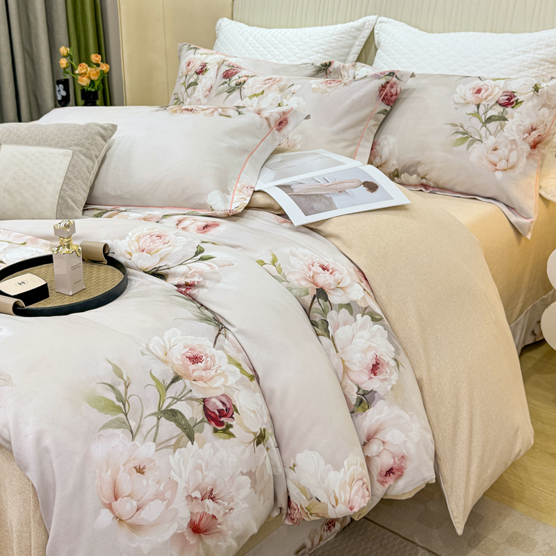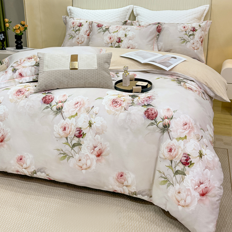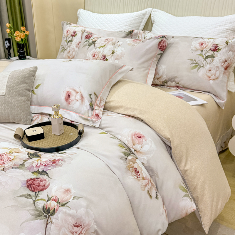 商品名称:凌鼎 2025新款100%全棉磨毛四件套数码印花加厚纯棉磨毛四件套 轻盈花语