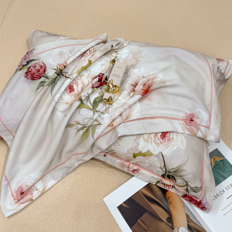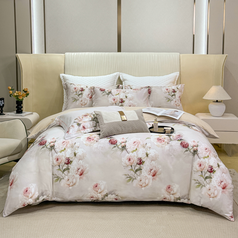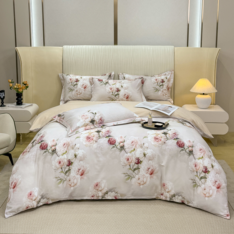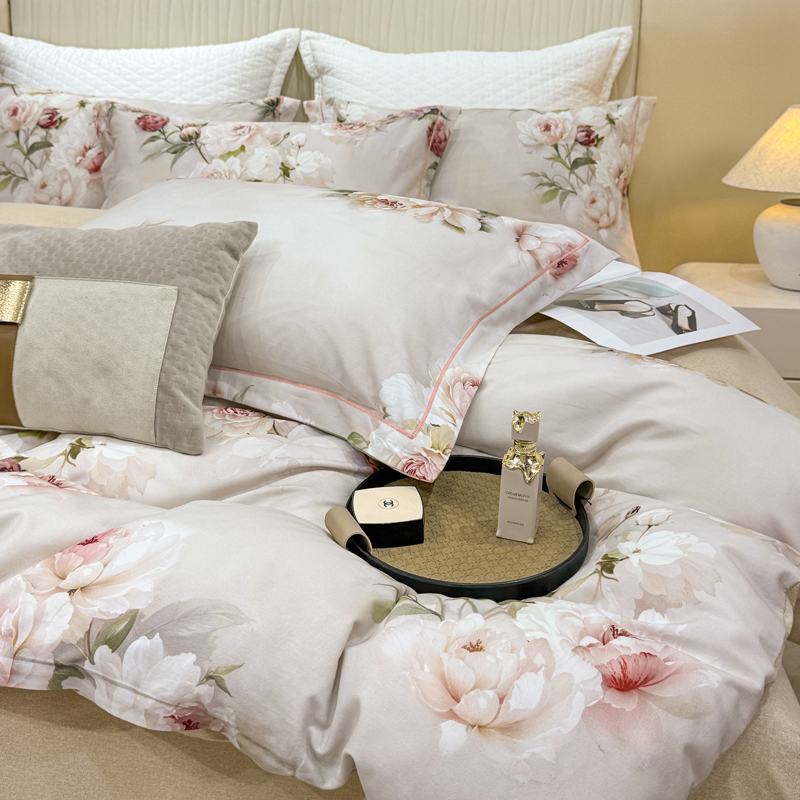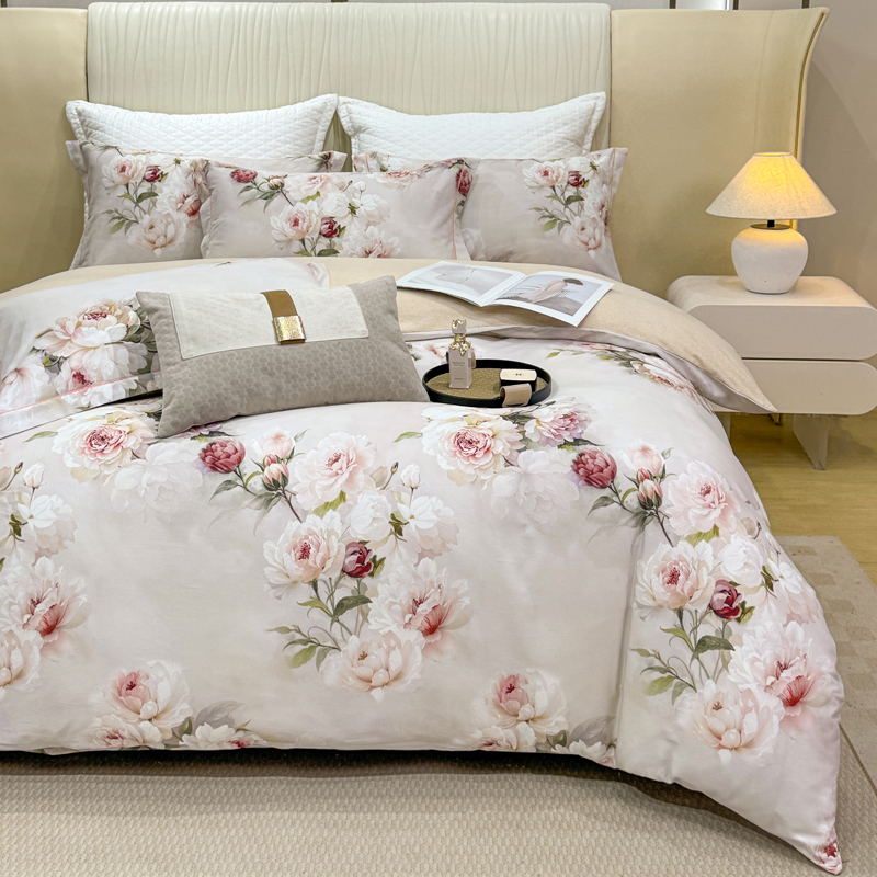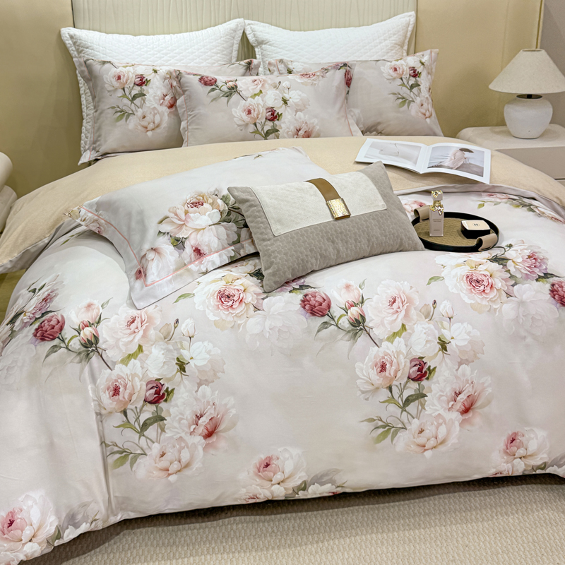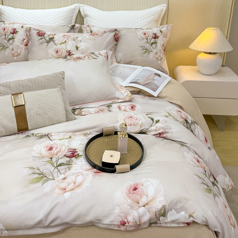 商品名称:凌鼎 2025新款100%全棉磨毛四件套数码印花加厚纯棉磨毛四件套 轻盈花语