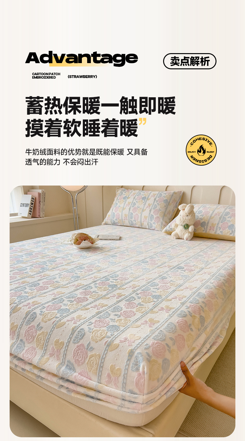 当前位置: 91家纺网 > 商品网购 > 床品套件 > 四件套 > 牛奶绒四件套 > 摩妮卡 2025新款小清新雕花牛奶绒床笠单床笠床笠三件套 春派