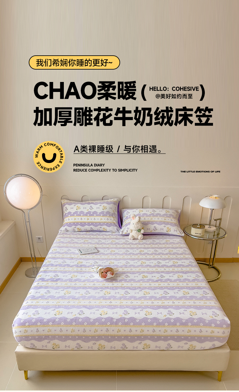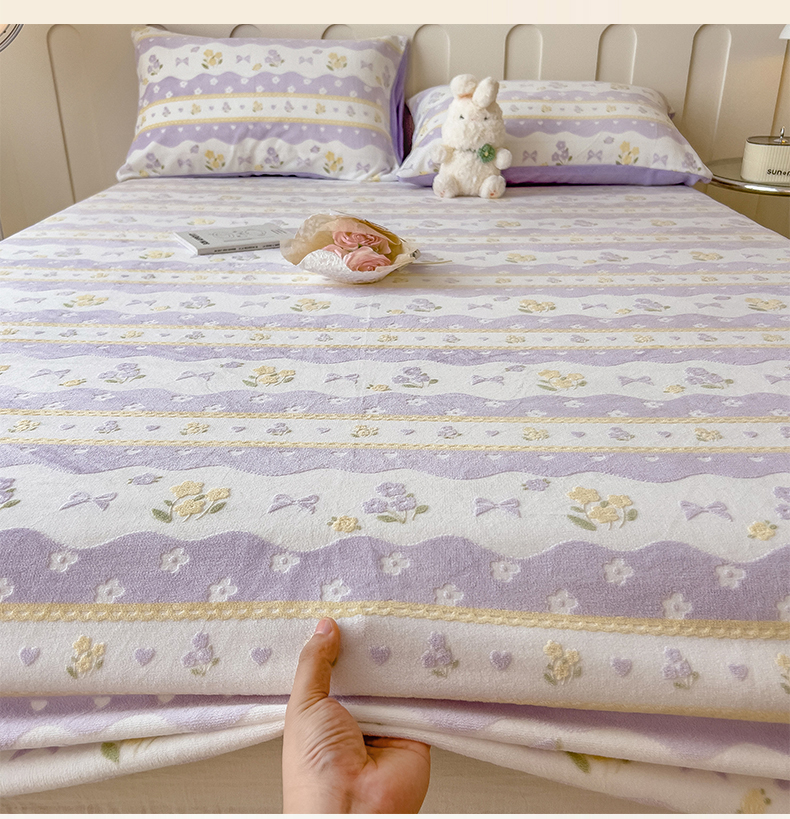 当前位置: 91家纺网 > 商品网购 > 床品套件 > 四件套 > 牛奶绒四件套 > 摩妮卡 2025新款小清新雕花牛奶绒床笠单床笠床笠三件套 美兮浅香