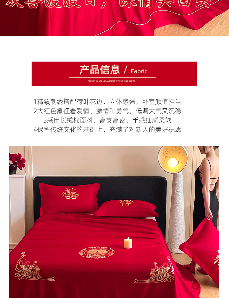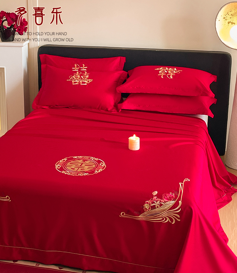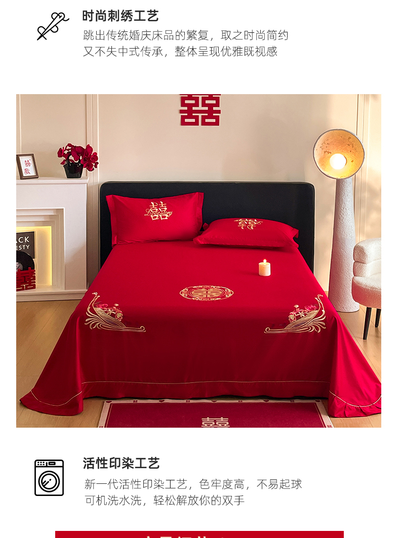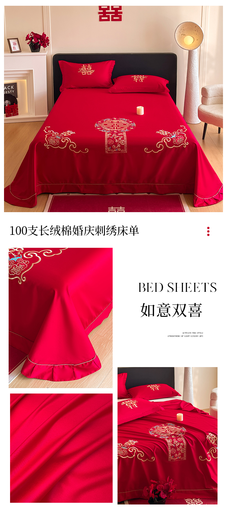 (总)玉雅家纺 2025新款100支长绒棉刺绣婚庆床单单件绣花三件套,长绒棉床单-情定,长绒棉床单-如意双喜,长绒棉床单-喜上加喜,长绒棉床单-永结同心