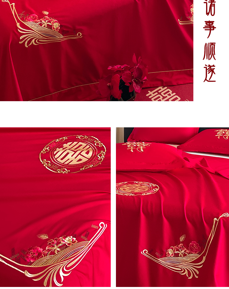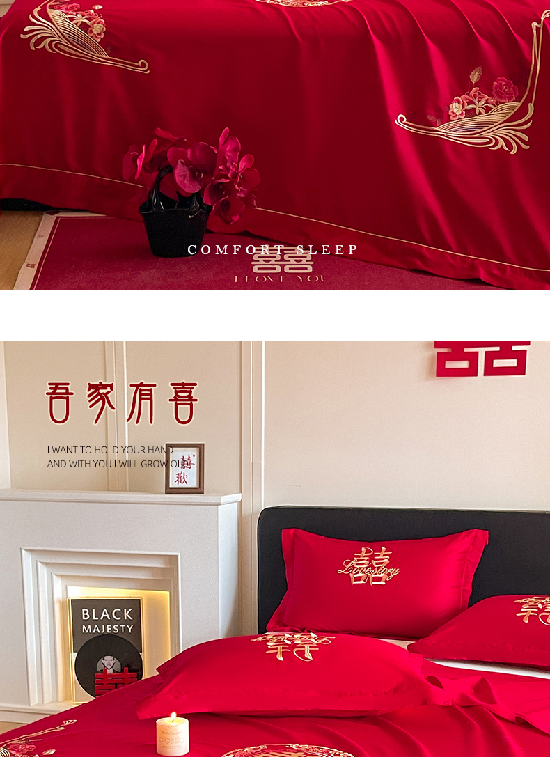 (总)玉雅家纺 2025新款丝缎亮面刺绣婚庆四件套,爱意绵绵,欢喜余生,喜至,新婚喜乐