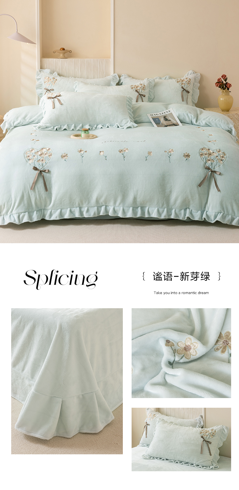 当前位置: 91家纺网 > 商品网购 > 床品套件 > 四件套 > 牛奶绒四件套 > 卡初家居(原微来) 2025新款A类秋冬亲肤牛奶绒刺绣款四件套-谧语系列(提供买家秀) 谧语-新芽绿