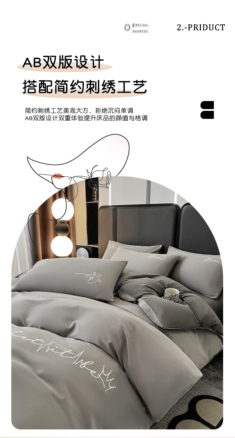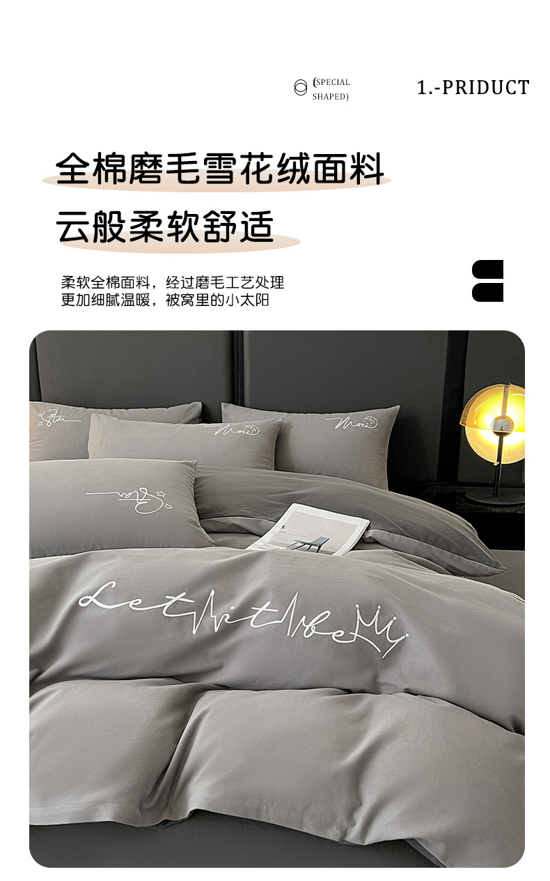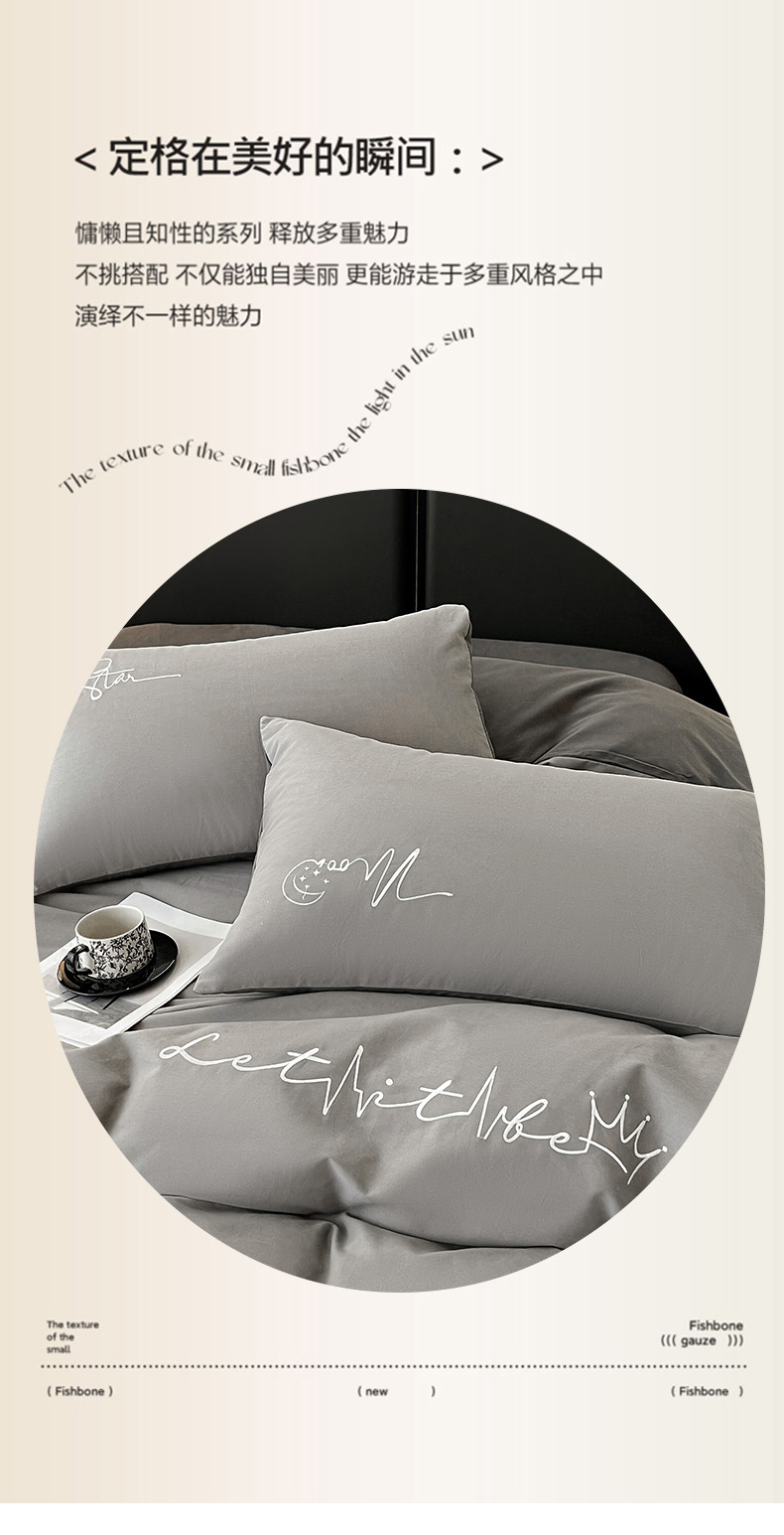 商品名称:有点武功 2025新款全棉纯色刺绣磨毛四件套(控价每个尺寸+30元) 浅灰