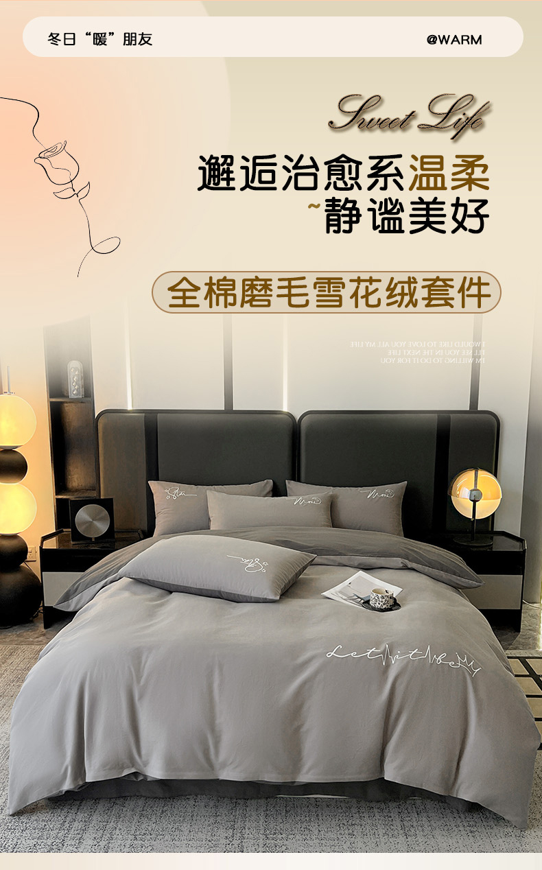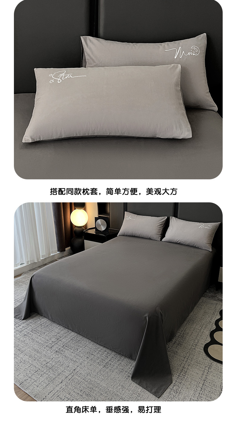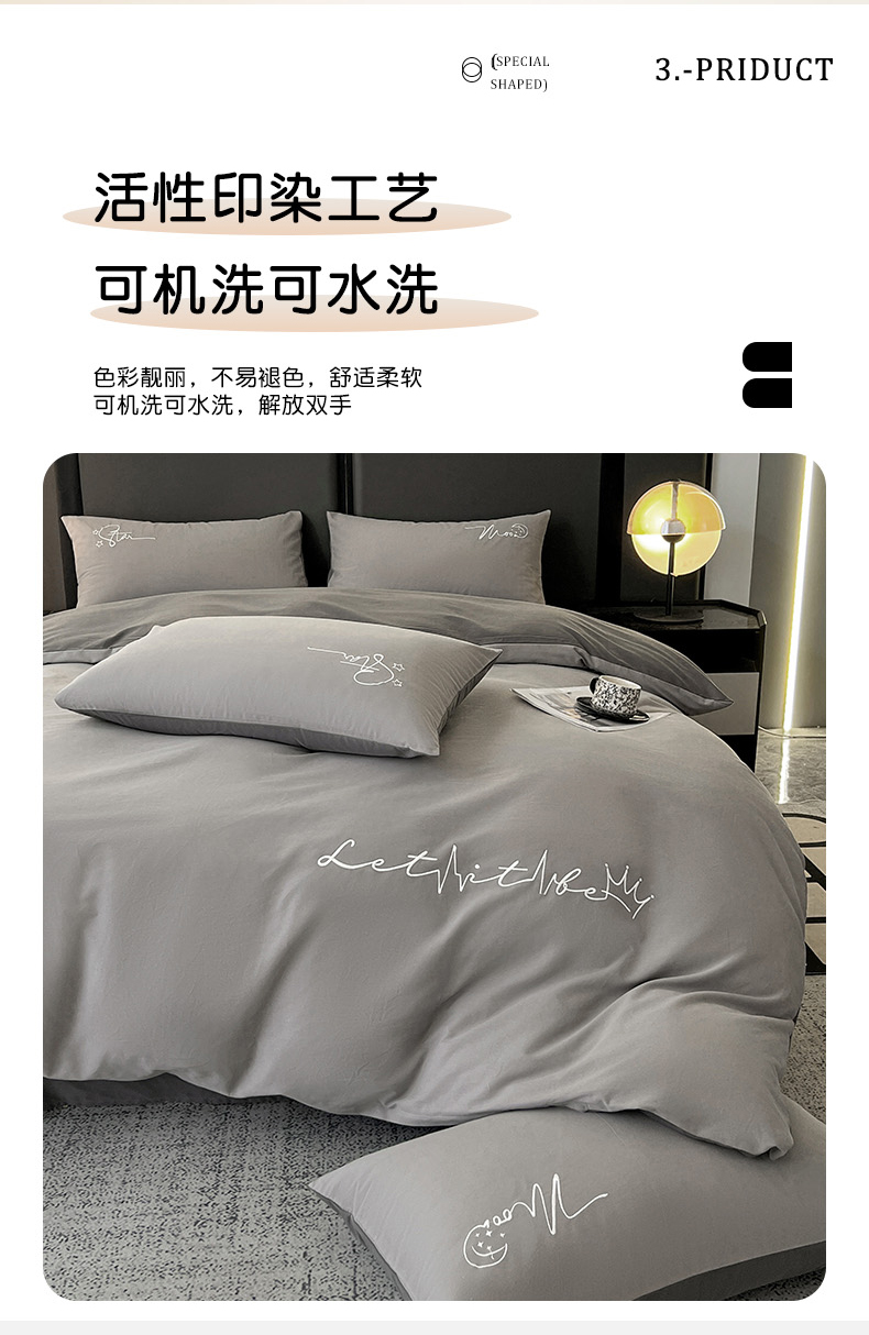商品名称:有点武功 2025新款全棉纯色刺绣磨毛四件套(控价每个尺寸+30元) 浅灰