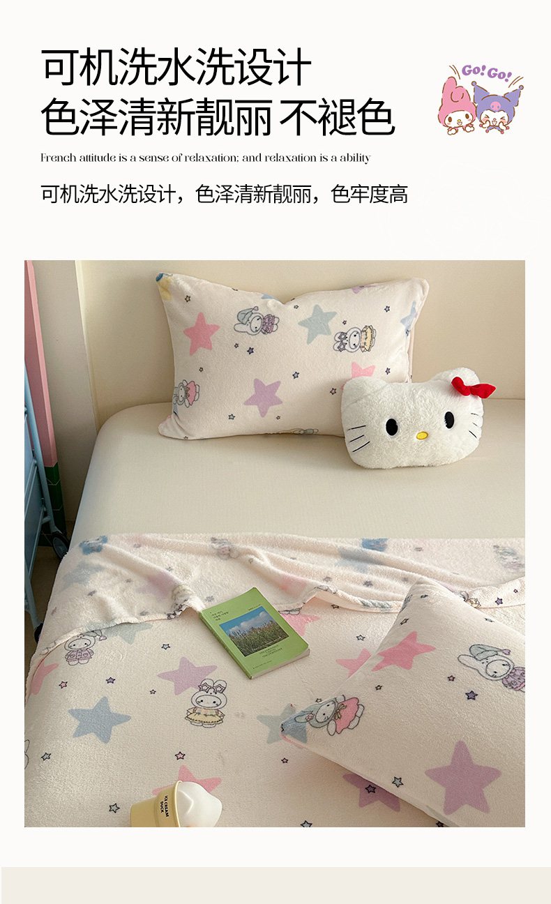 (总)贝扬思家纺 2025新款水洗棉毛巾绣夏被四件套-三丽鸥Star系列,Star-粉星星kt,Star-可爱鬼库洛,Star-蓝星星kt,Star-绿格大眼蛙,Star-马卡龙美乐蒂,Star-贪吃玉桂狗,Star-淘气帕恰狗,Star-甜甜库洛米,Star-樱桃玉桂狗