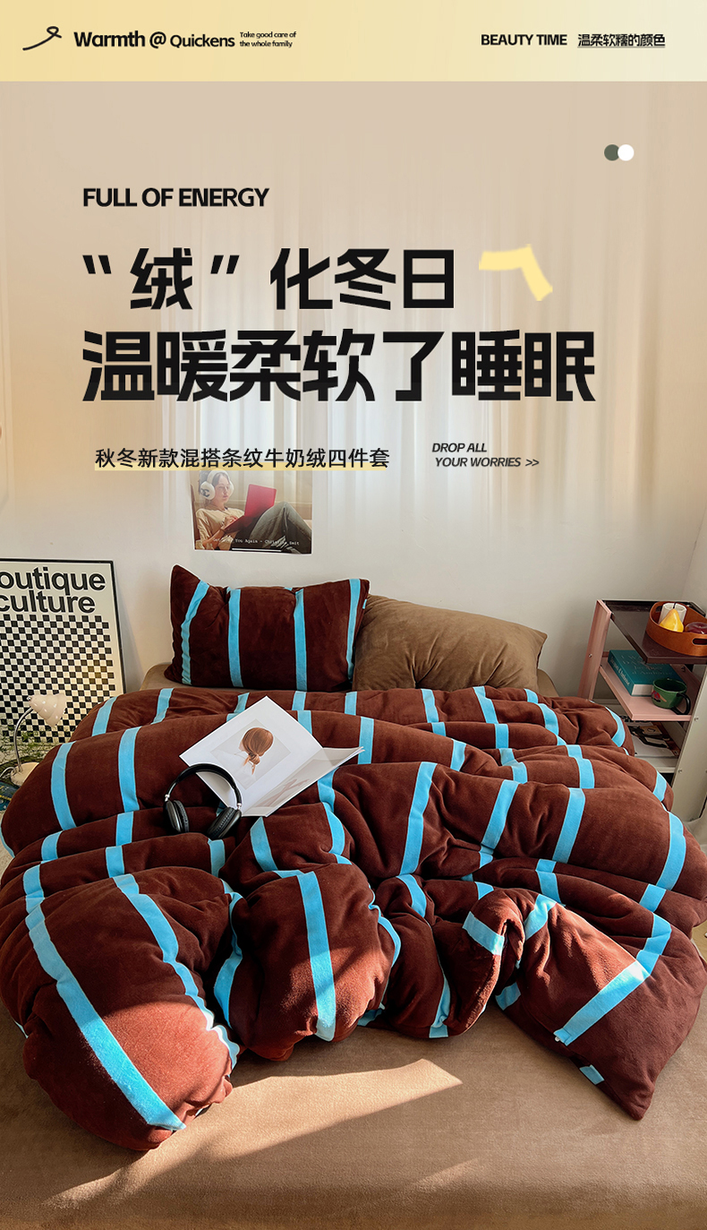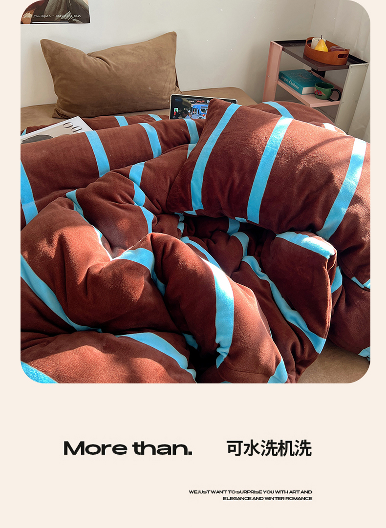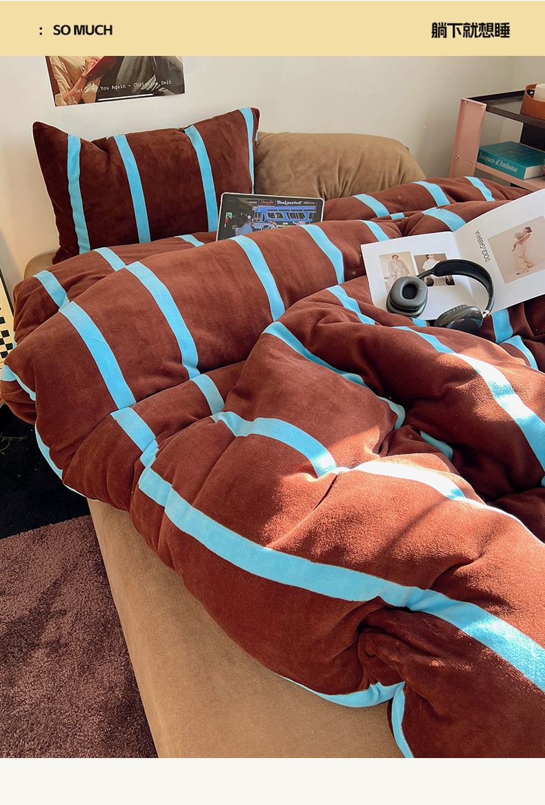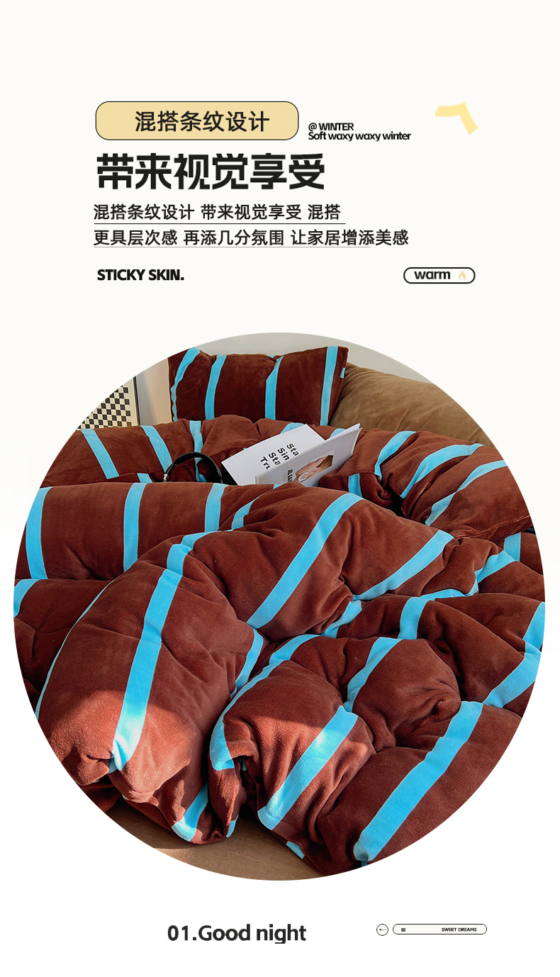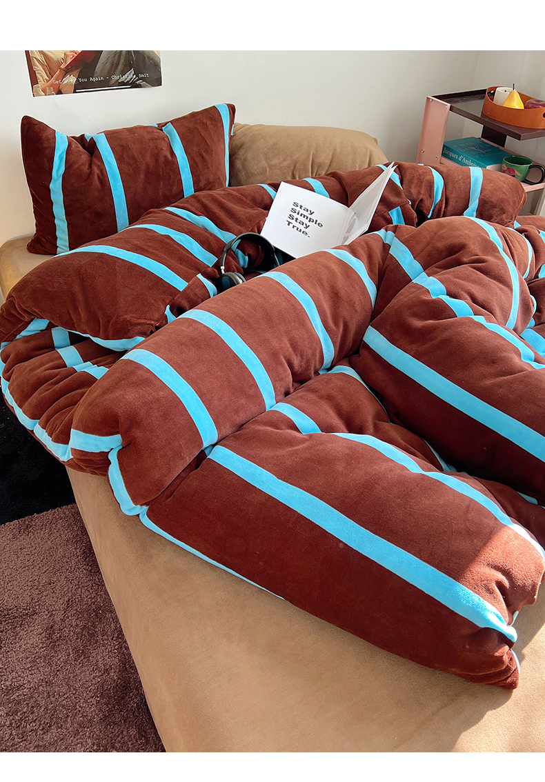当前位置: 91家纺网 > 商品网购 > 床品套件 > 四件套 > 牛奶绒四件套 > 蜜宿 2025新款混搭条纹牛奶绒四件套(小号默认条纹枕套一只)可以配小号四件套枕套9/一只;标准和加大(默认混搭枕套条纹一只,纯色一只,可以备注更换!) 焦糖布丁